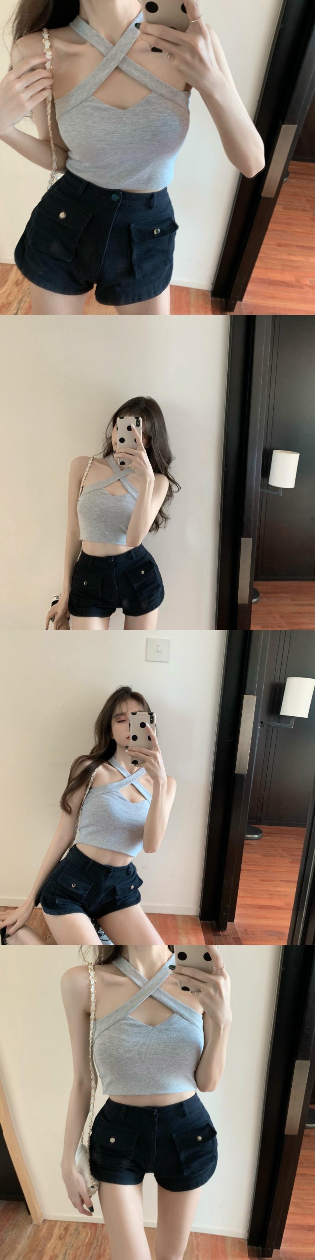 レディーストレンドクロップドショートトップス スプリング夏服 春物 夏物 Marchs74543570467