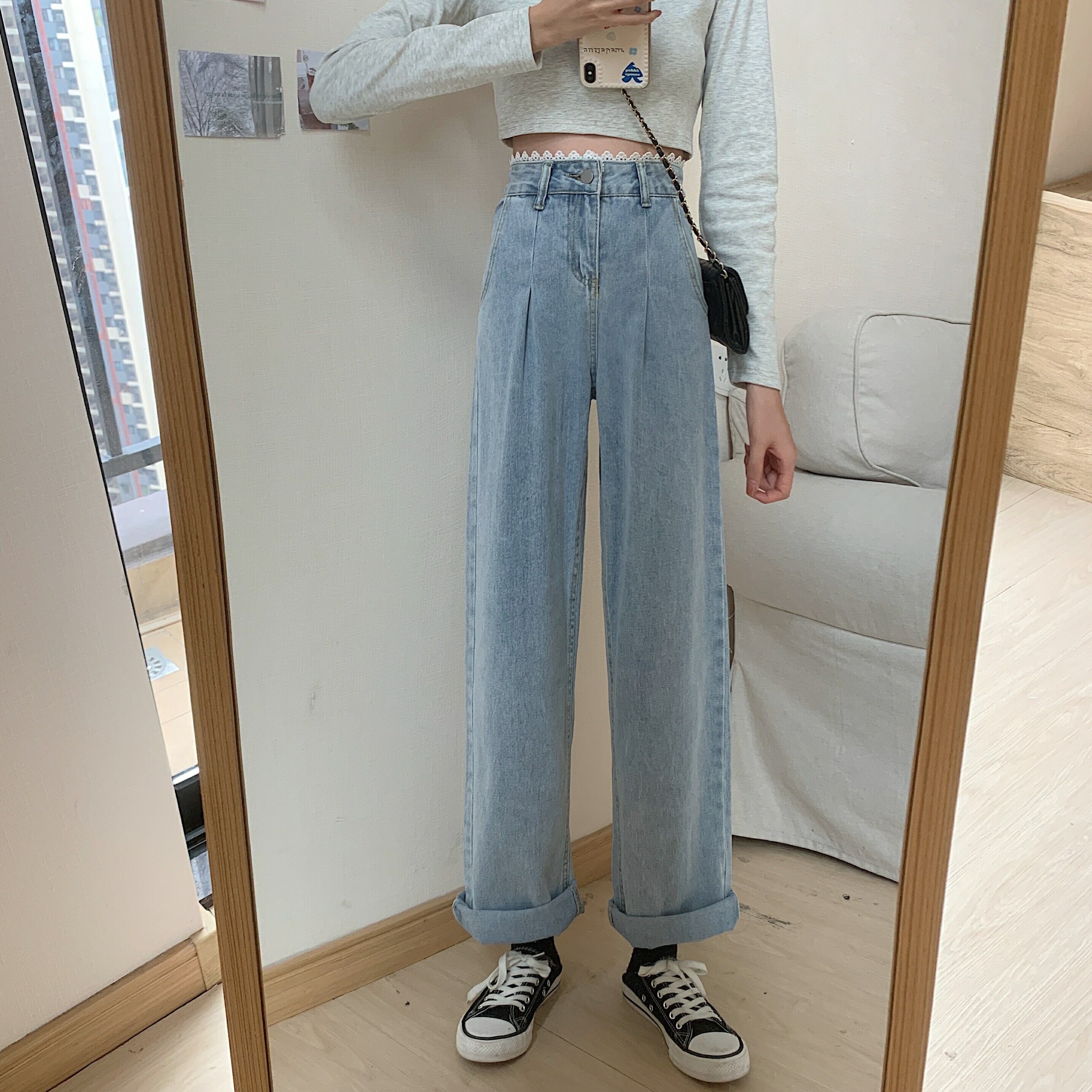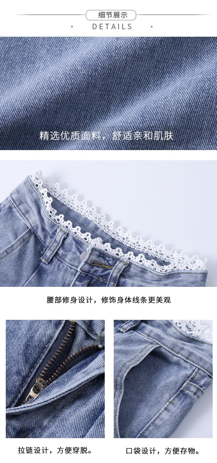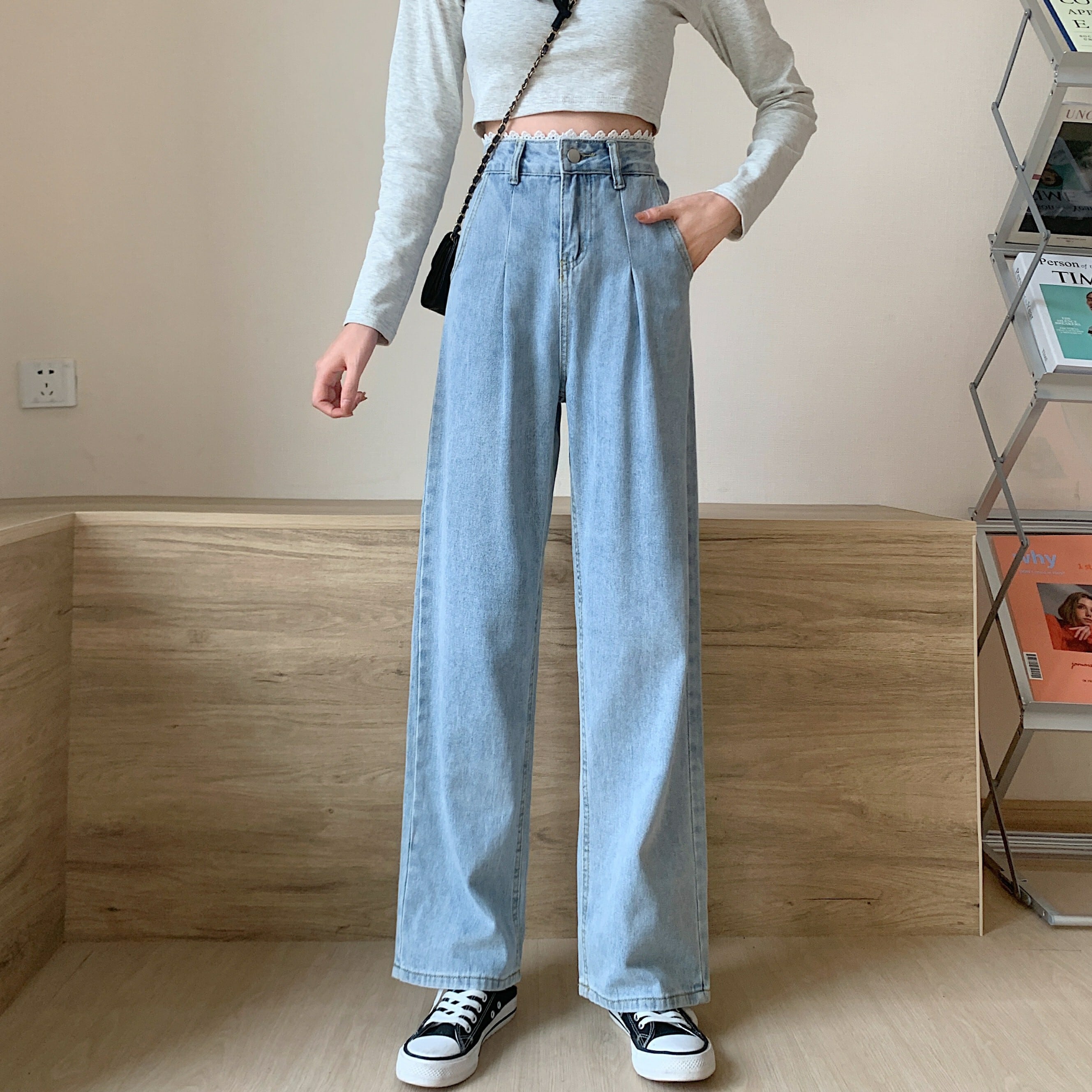 スプリング秋物レースジーンズ ハイウェストウェストルーズパンツ 春物 オータム ウエスト Marchs71512234886