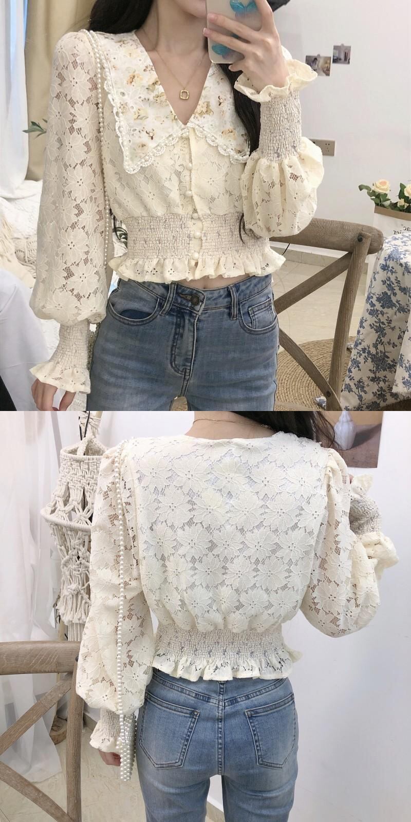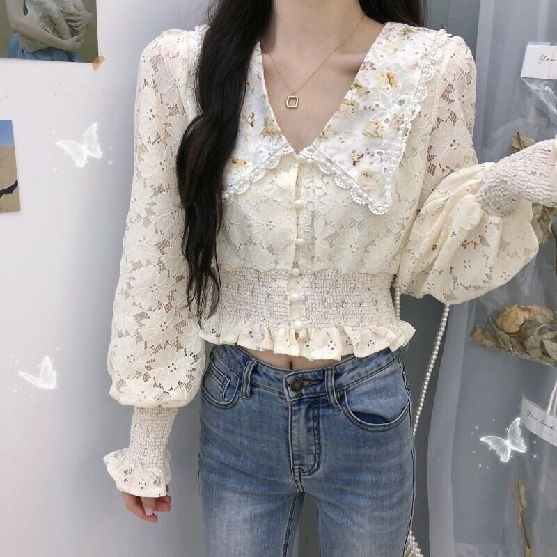 スプリングレースシャツ スタンダードスタイルウェストトップス レトロ 春物 ウエスト Marchs69982956042
