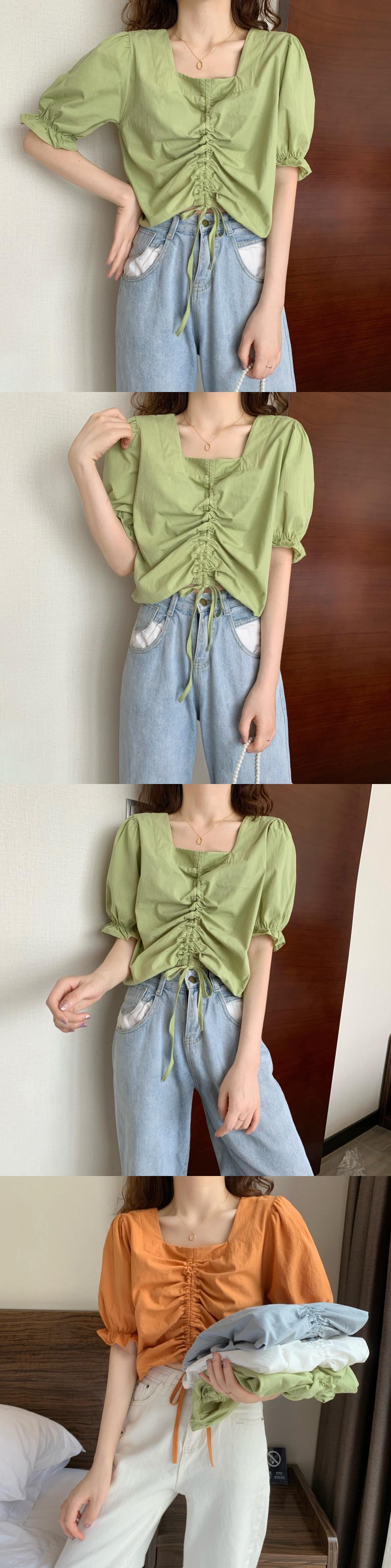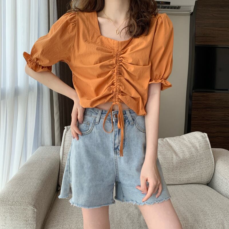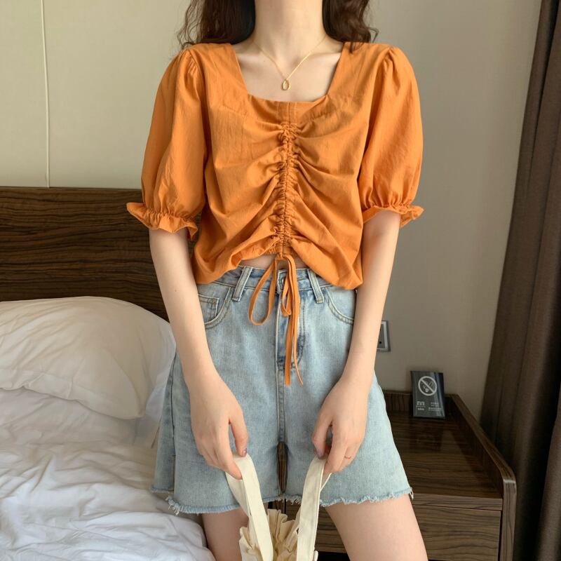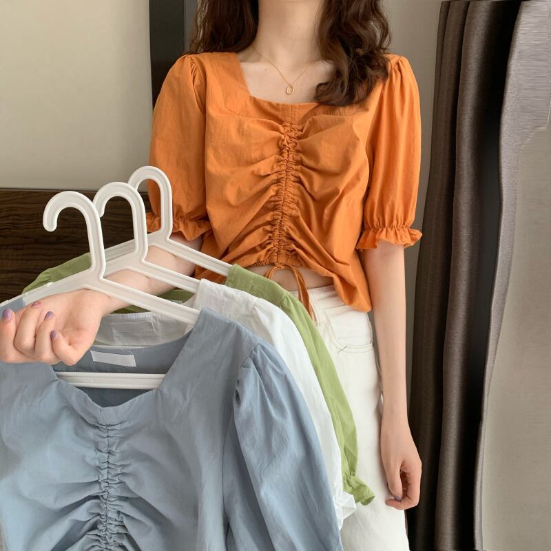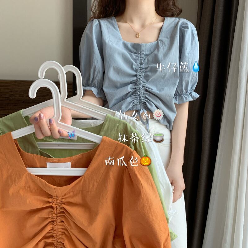 スタイルスリーブトップス 夏服韓国ファッションギャザーショートカラーシャツ 大人ガーリー スウィート キュート カジュアル 夏物 スクウェア Marchs55474697103