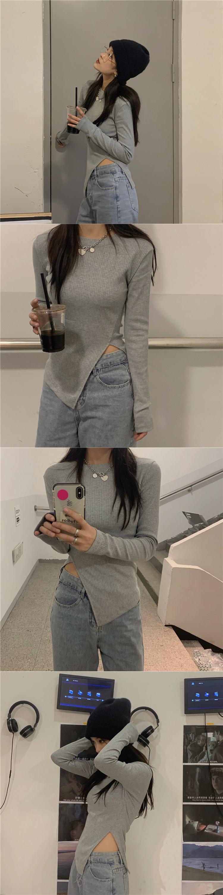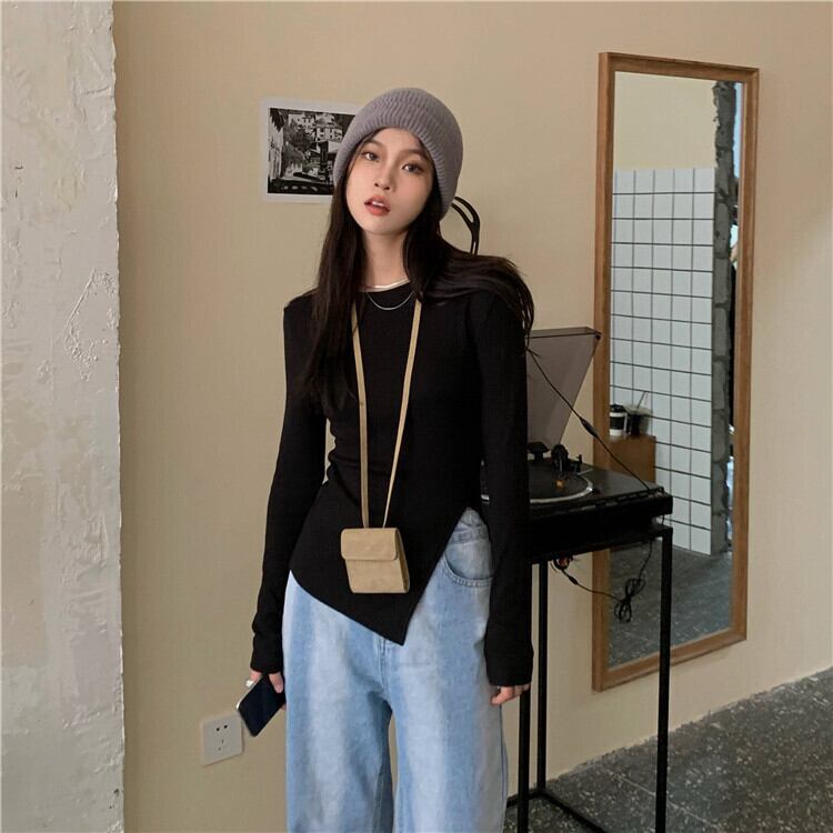 Tシャツシャツ ストライプトップス スプリングゆったり ロング 春物 長袖 Marchs41187587020