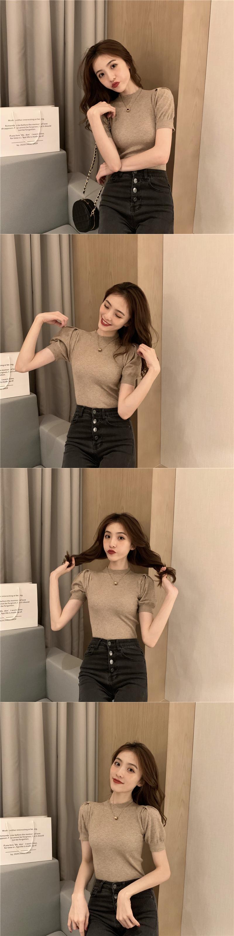 スリーブショートセーター トップス ホワイト夏服薄手スリムTシャツ 夏物 シルク Marchs40642152615