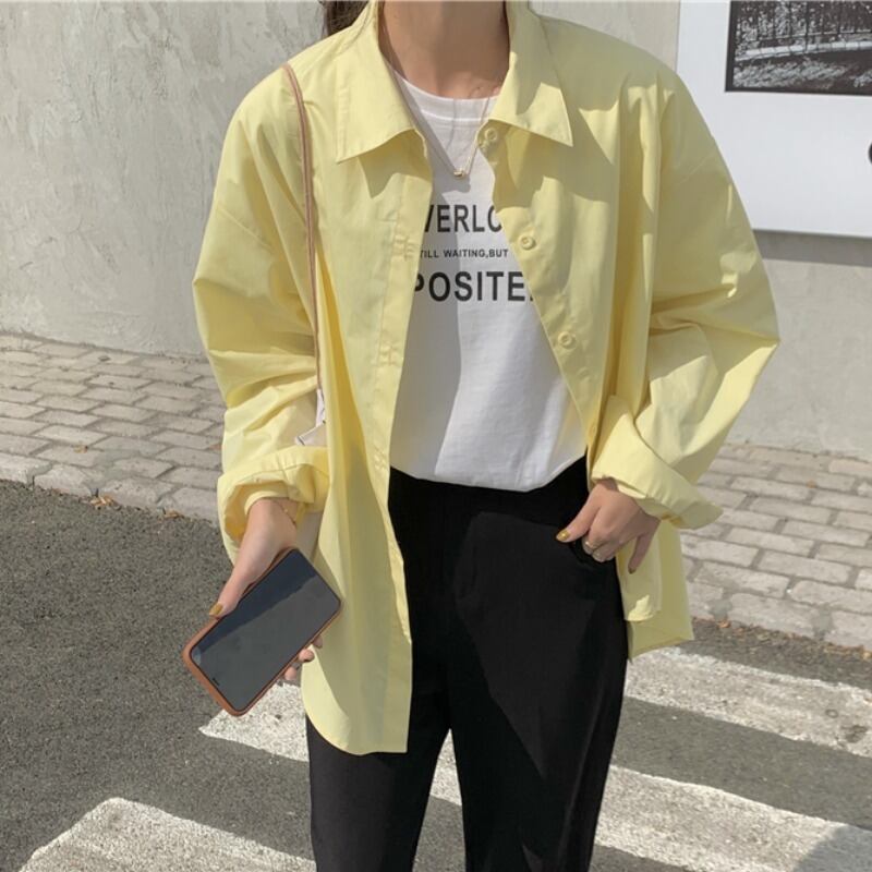 韓国ファッションスプリングシャツ レディースルーズイエローカジュアルカラー 春物 スタイル Marchs20225331965