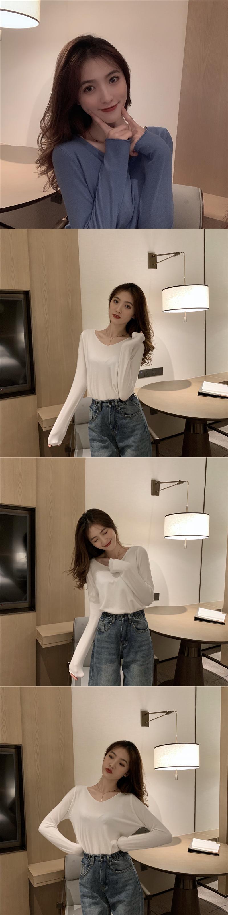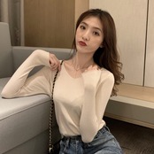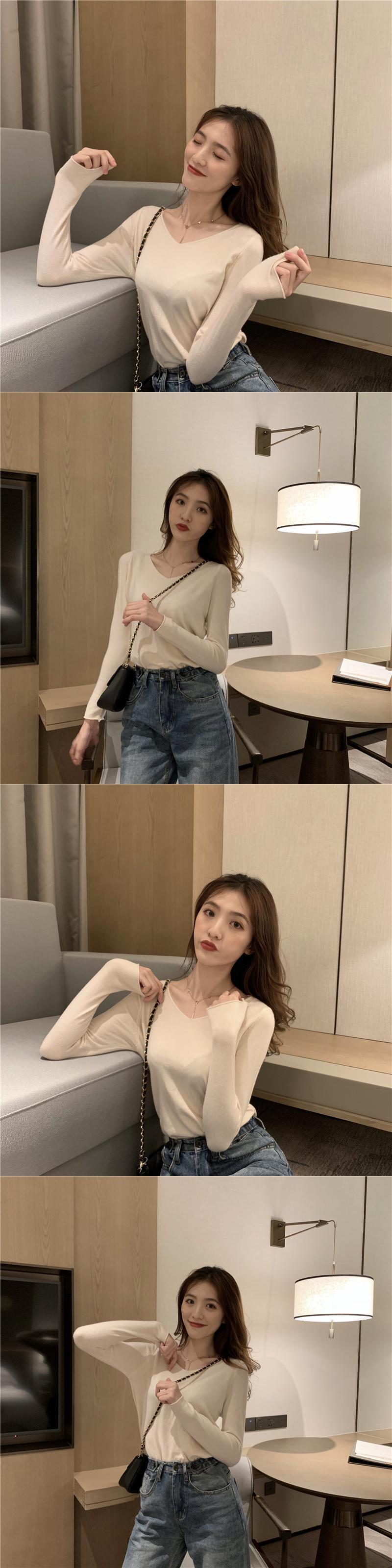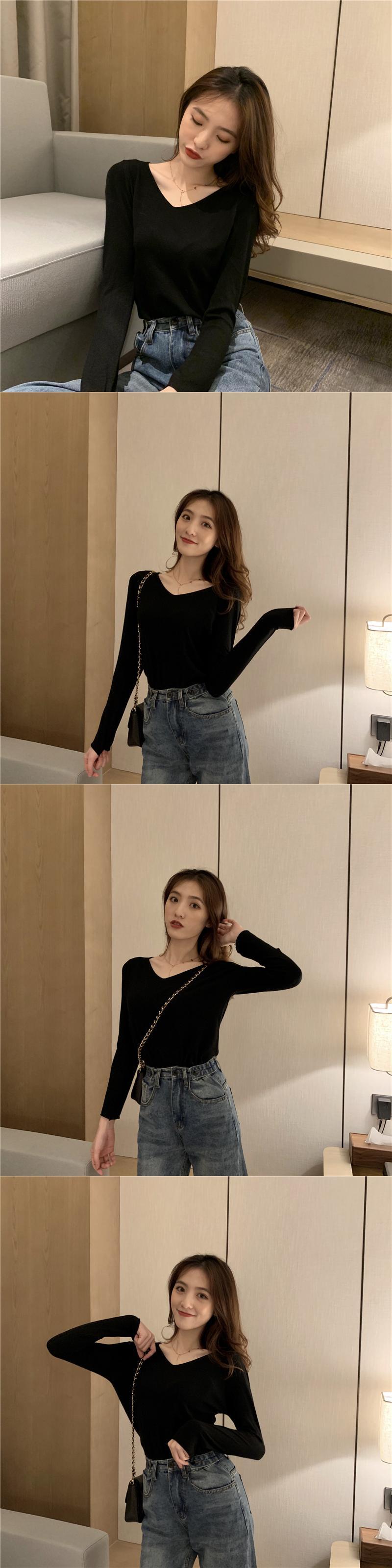 Vネック秋物Tシャツシャツ レディーススプリングゆったりブラックトップス トレンド ロング 春物 オータム 長袖 Marchs91694234845