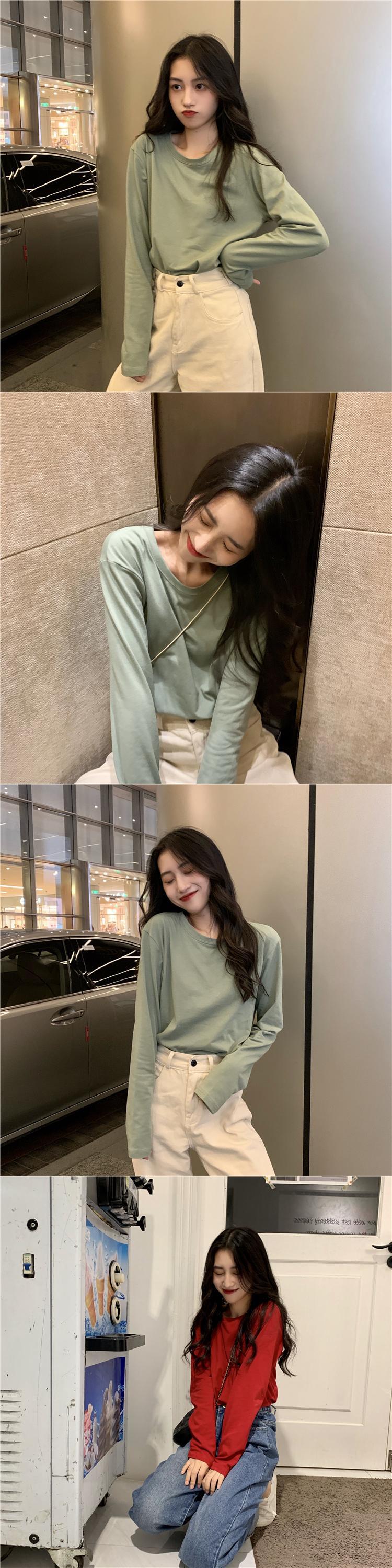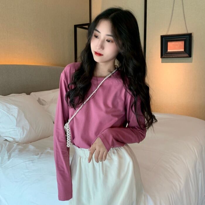 Tシャツシャツ ゆったりレディース韓国ファッションルーズスタイル秋物トップス トレンド ロング オータム 長袖 Marchs85913318414