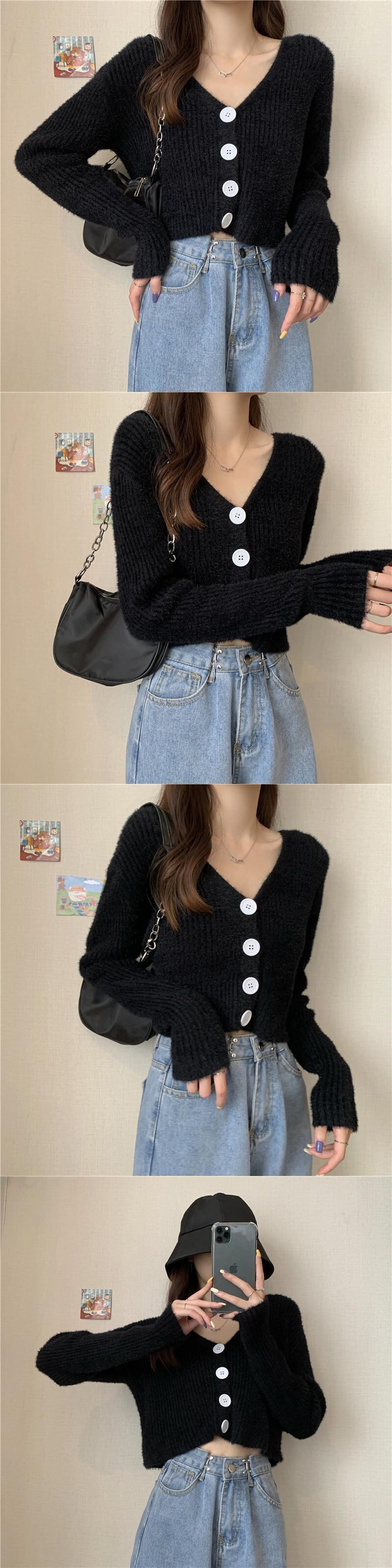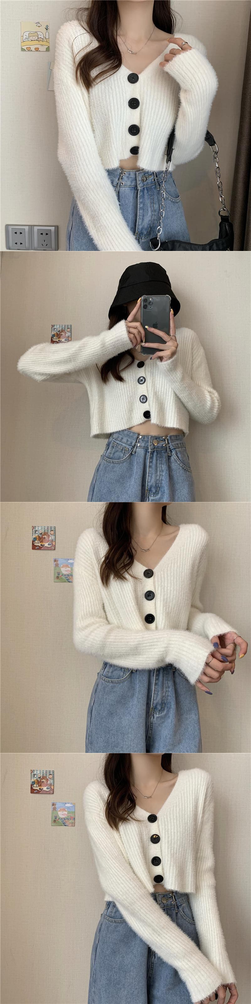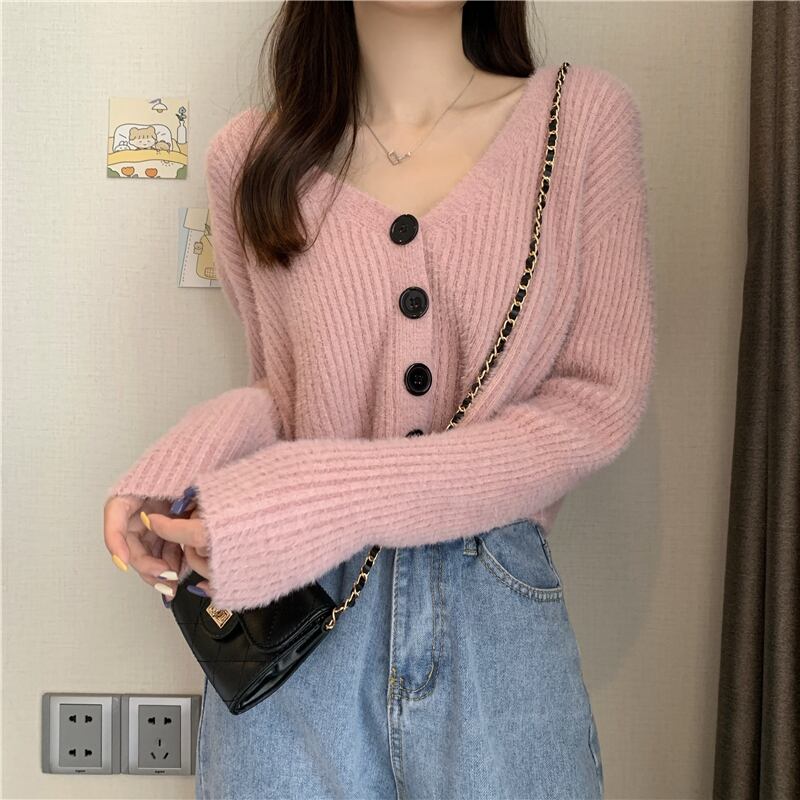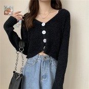 ショートトップス ハイウェストルーズVネックレディースニットカーディガン秋物 オータム ウエスト Marchs15444596721