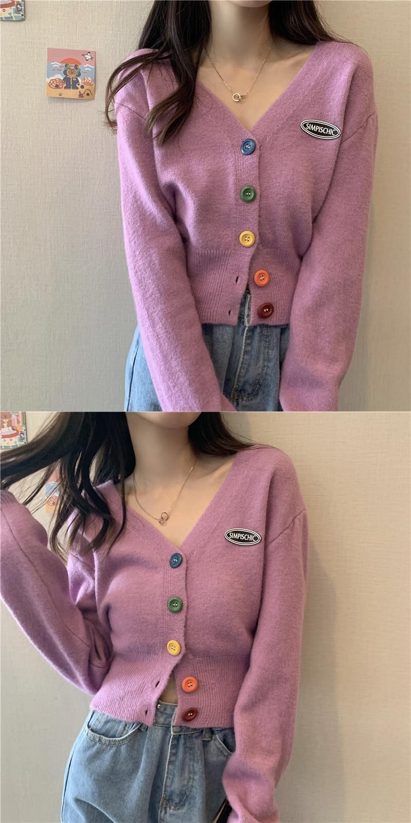 スプリングスタイルルーズショートニットトップス セーター カーディガンジャケット レディース 春物 Marchs23343583715