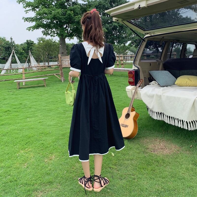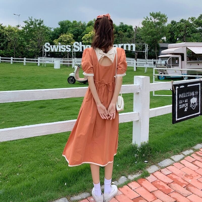 夏服韓国ファッションスタイルバックリボンウェストミニ ワンピースワンピースロングスカート レディース 夏物 スクウェア ウエスト Marchs59112697172