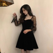 スタイルワンピーススプリングカラースタンダードブラックウェストスカート レトロ 春物 スクウェア ウエスト Marchs71008105087