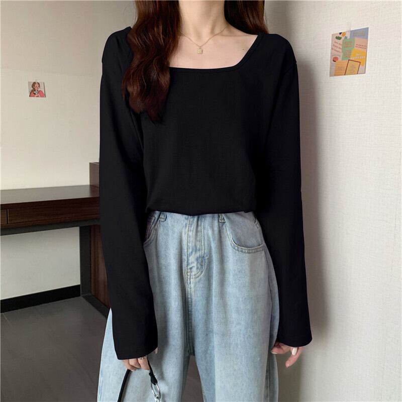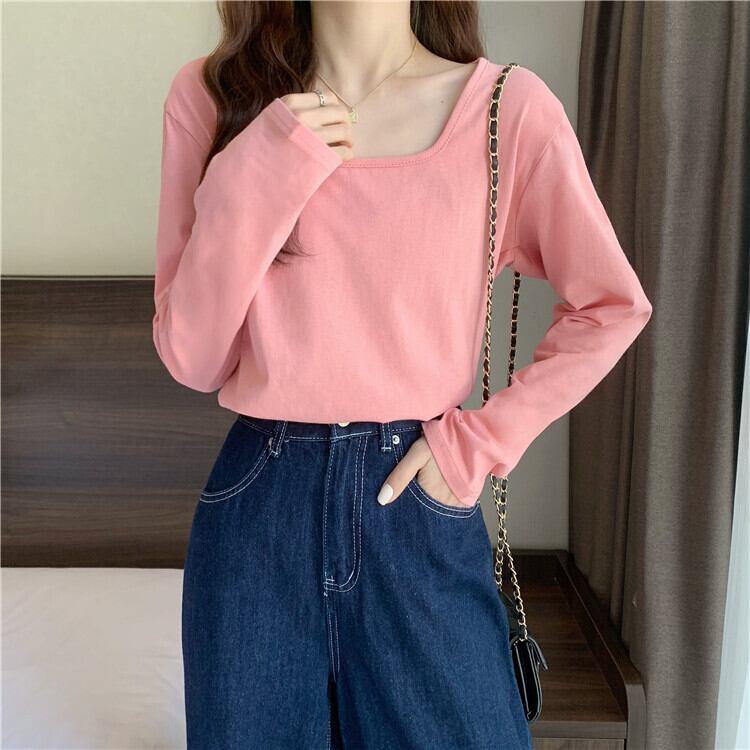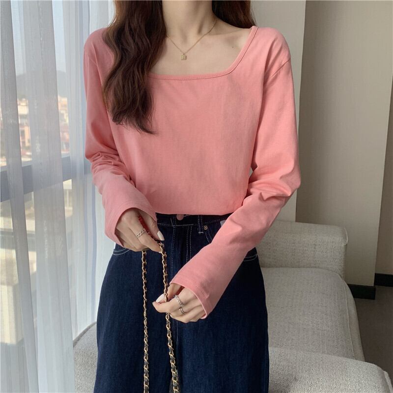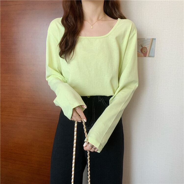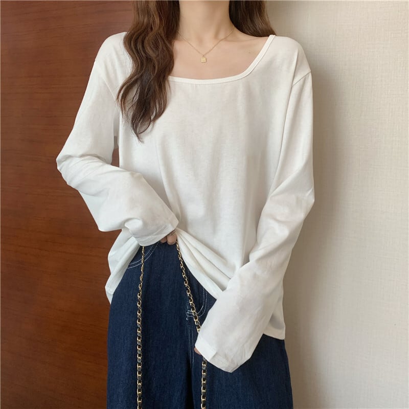 カラートップス スタンダードスタイルゆったりシャツ Tシャツレディーストレンド ロング レトロ スクウェア 長袖 Marchs84951456621