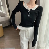 ラウンドネックブラックホワイトゆったりシャツスプリングスタイルブラウス 春物 Oネック Marchs57231785031