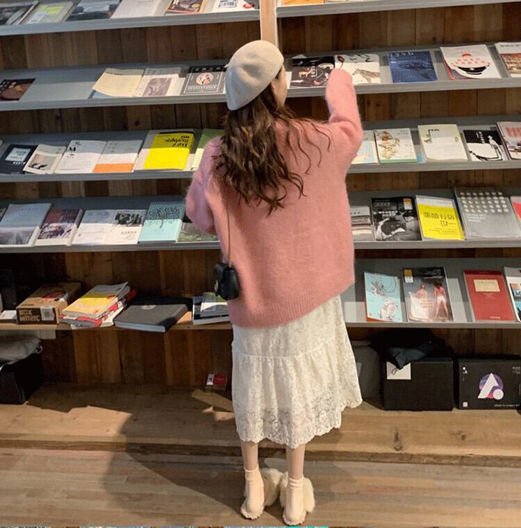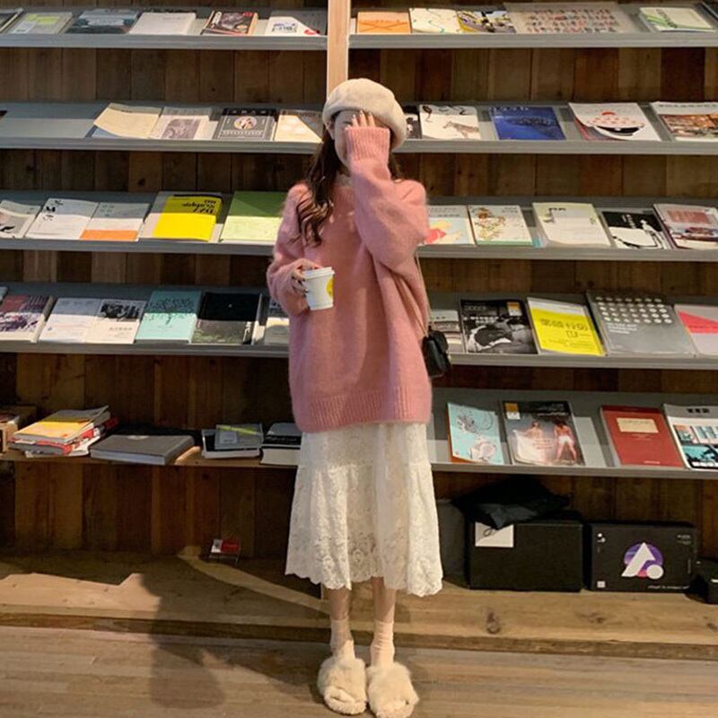 色:[シングルピース]ピンクのセーター,【ワンピース】レースワンピース