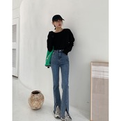 ブラックスリットジーンズ スプリング秋物ハイウェスト薄手パンツ 春物 オータム ウエスト Marchs19681353797
