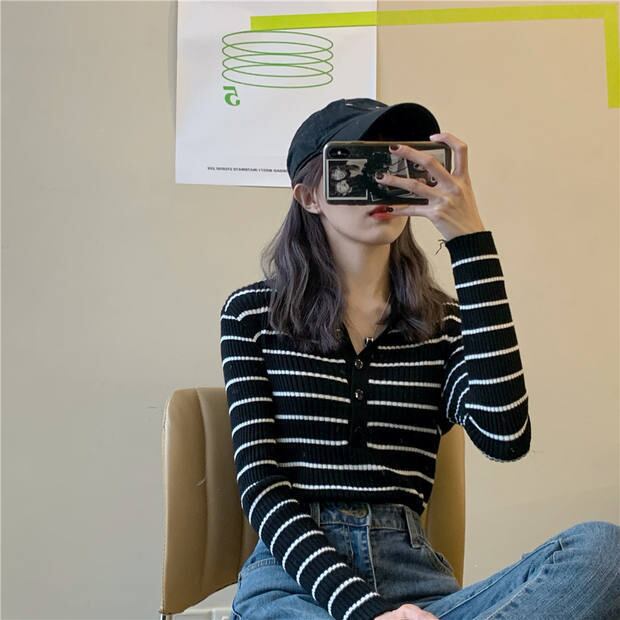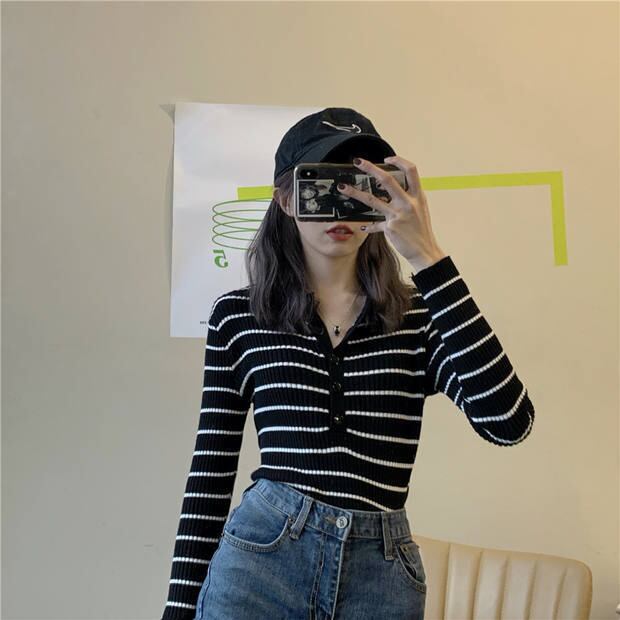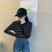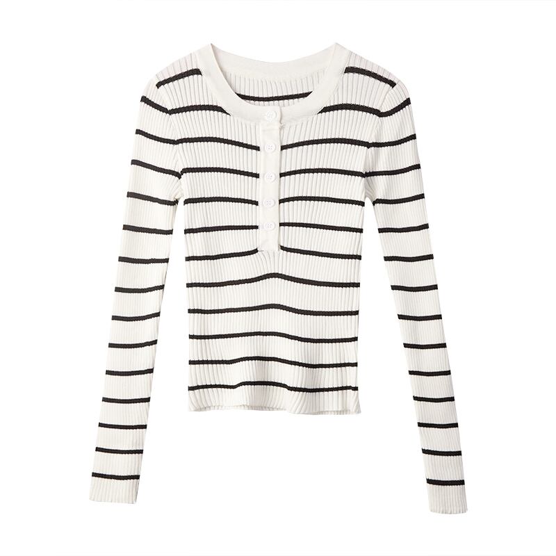 レディースゆったりシャツ スプリング秋物トップス ストライプニットセーター ロング 春物 オータム 長袖 Marchs70616072473