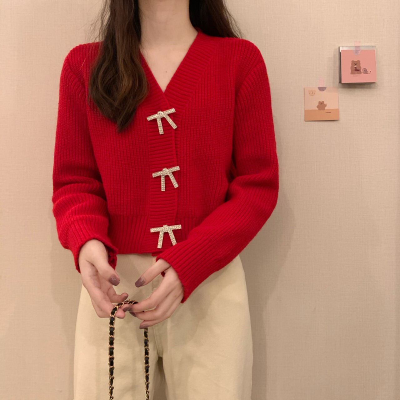 スプリングスタイルショートニットカーディガンVネックセーター ジャケット レディース 春物 Marchs55201981343