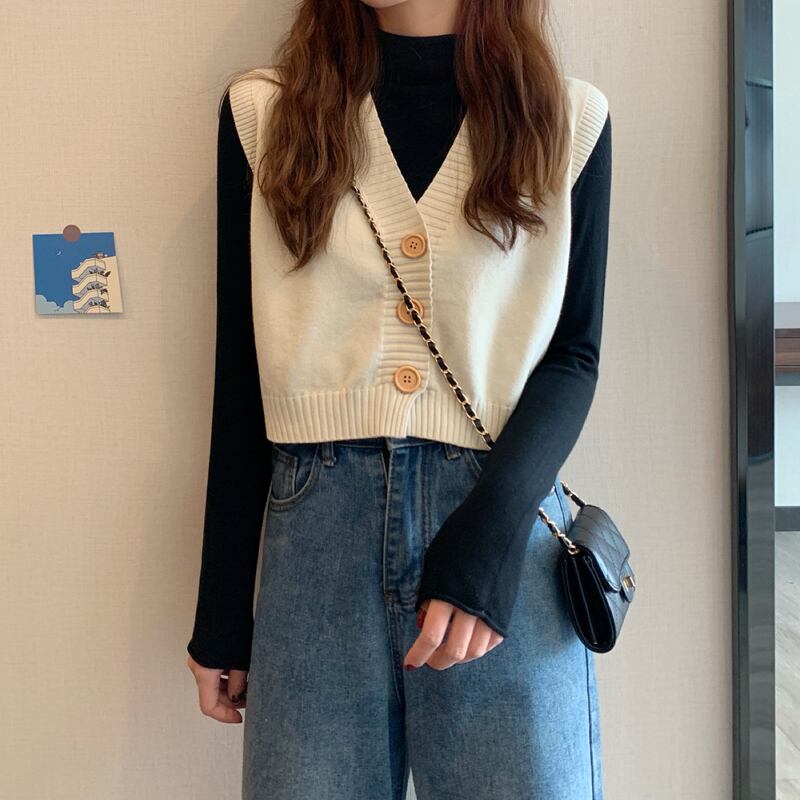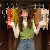ノースリーブニットカーディガンスプリング秋物薄手ルーズトレンドショートVネックセーター ジャケット 春物 オータム Marchs36463551178