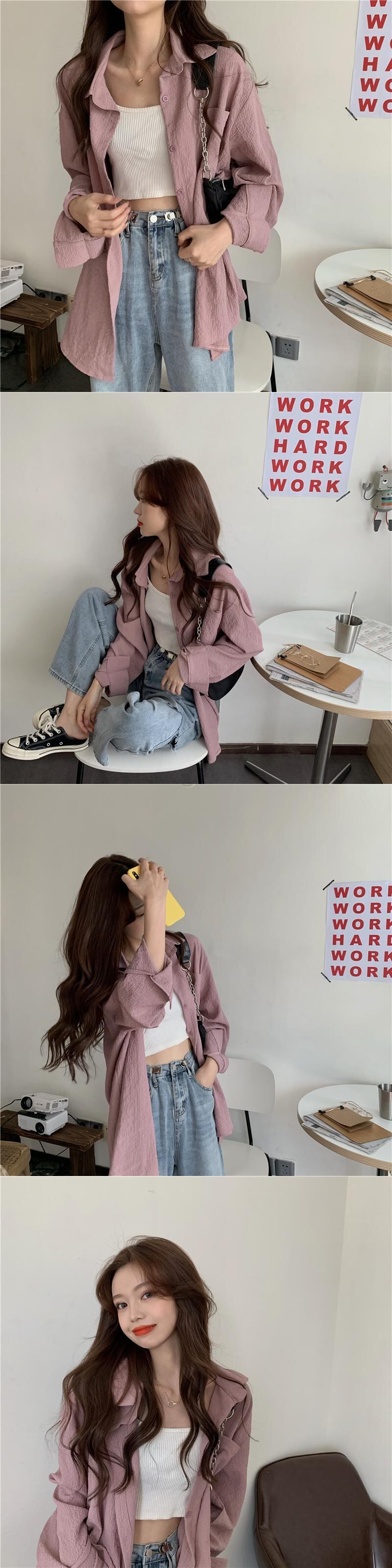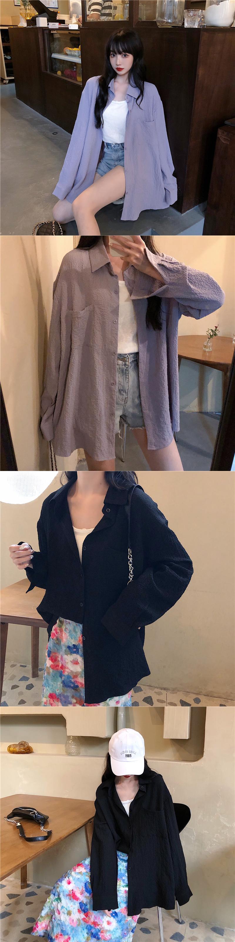 韓国ファッションスタンダードブルーシャツ レディース薄手ジャケット レトロ スタイル ミドル丈 Marchs20242364279