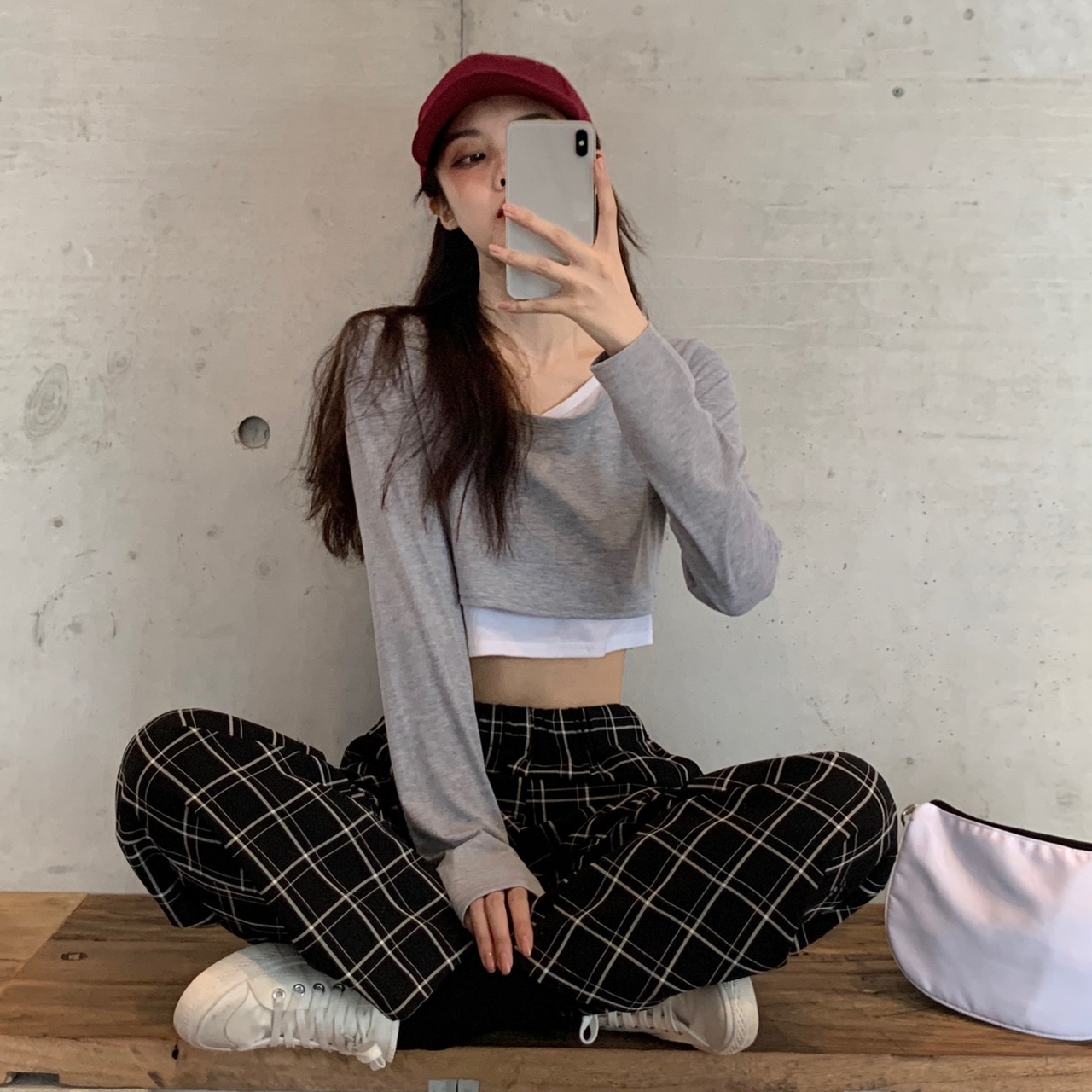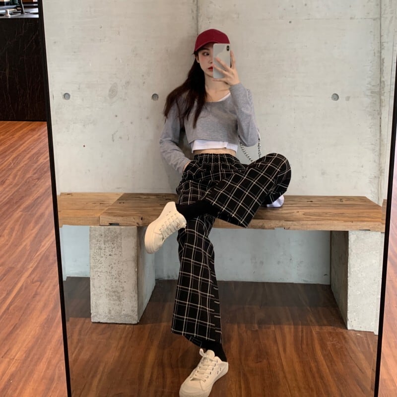 ショートトップス スプリングハイウェストTシャツトレンド ロング 春物 長袖 ウエスト Marchs18872434016