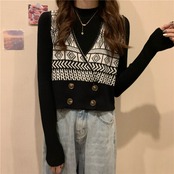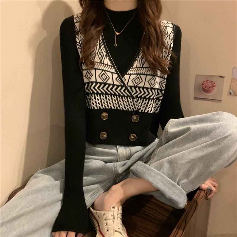 レディースセーター スプリングルーズジャケット スタンダードVネックショートノースリーブ レトロ 半袖 ハーフスリーブ 春物 Marchs8415315746