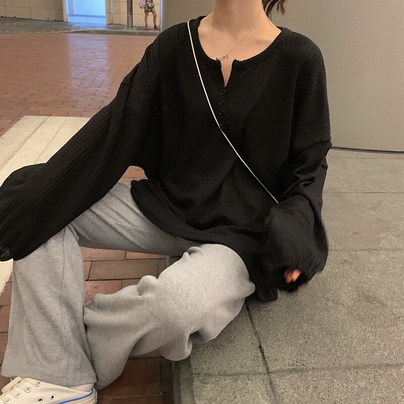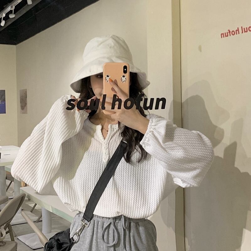 スプリング韓国ファッションカラールーズプルオーバー セーター スタイルゆったりシャツ トップス ロング 春物 ピュア 長袖 Marchs33421448084