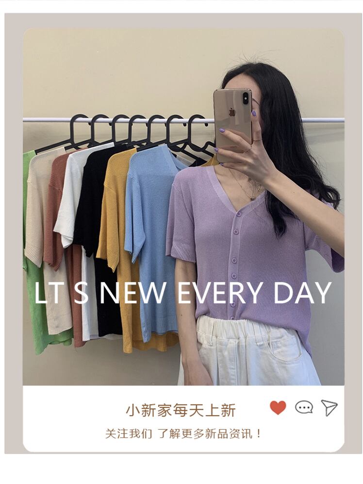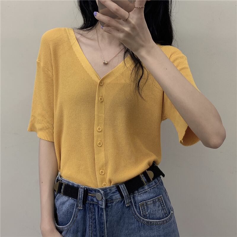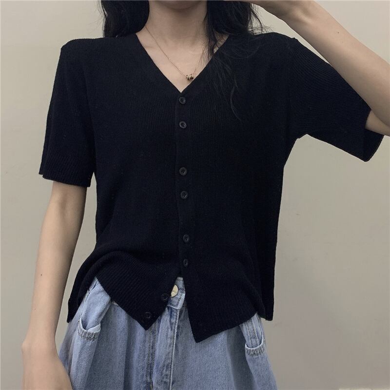 スタンダードクロップドトップス 夏服Vネックニットカーディガン レトロ 大人ガーリー スウィート キュート カジュアル 夏物 Marchs81661359089