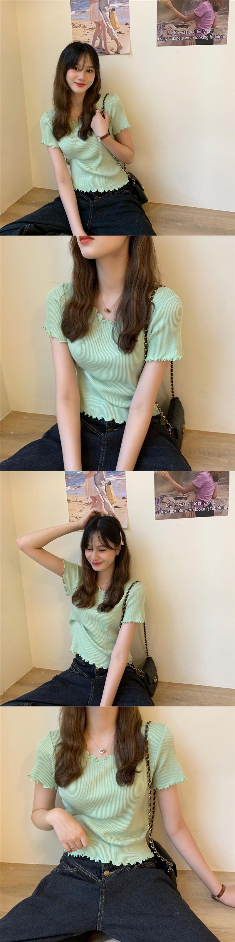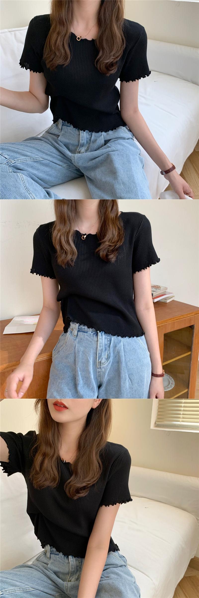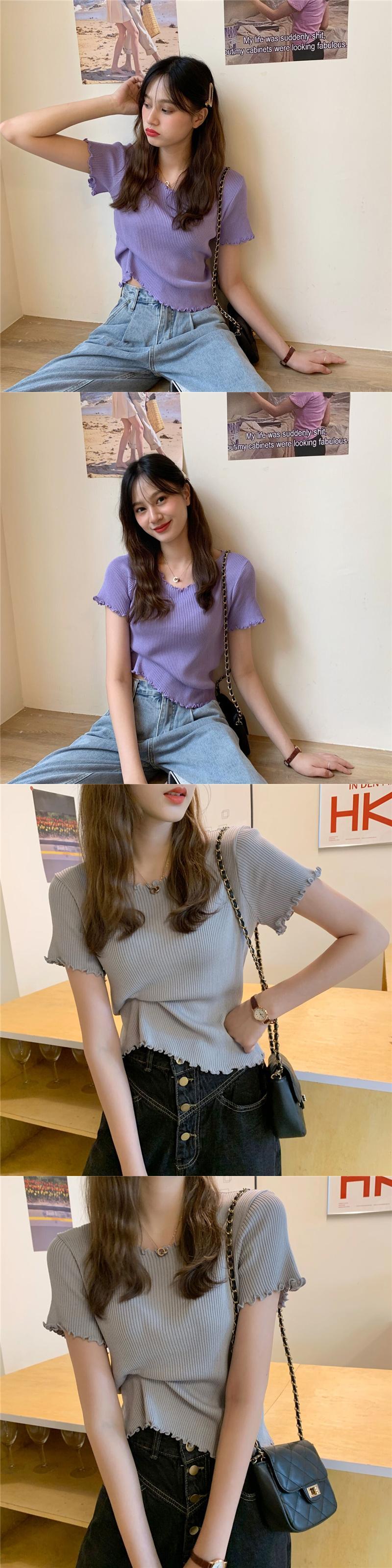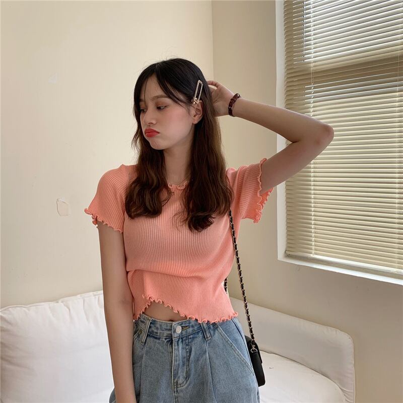 夏服ショートセーター グレーTシャツスリムトップス ハイウェストウェスト 夏物 シルク ウエスト Marchs82137181622