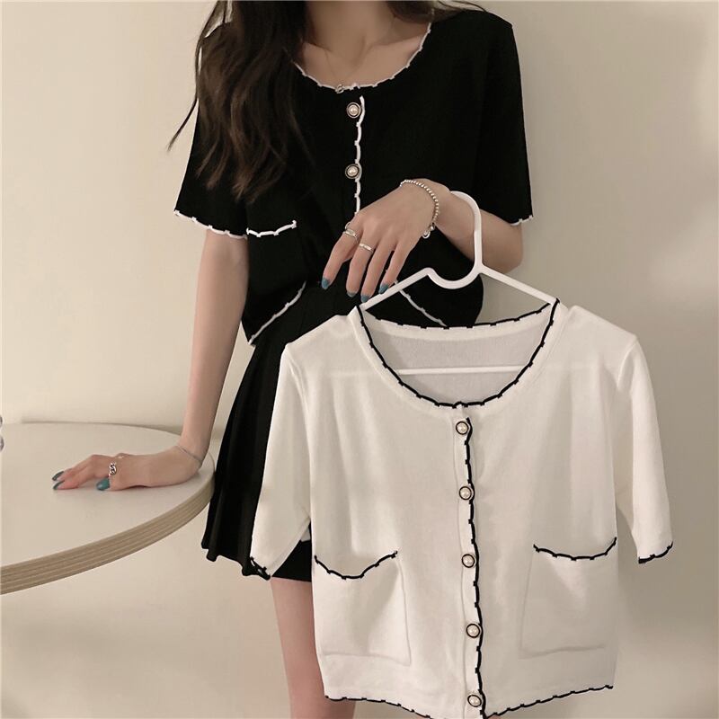 スタイルニット夏服ルーズ薄手クロップドトップス 夏物 シルク Marchs93444099386
