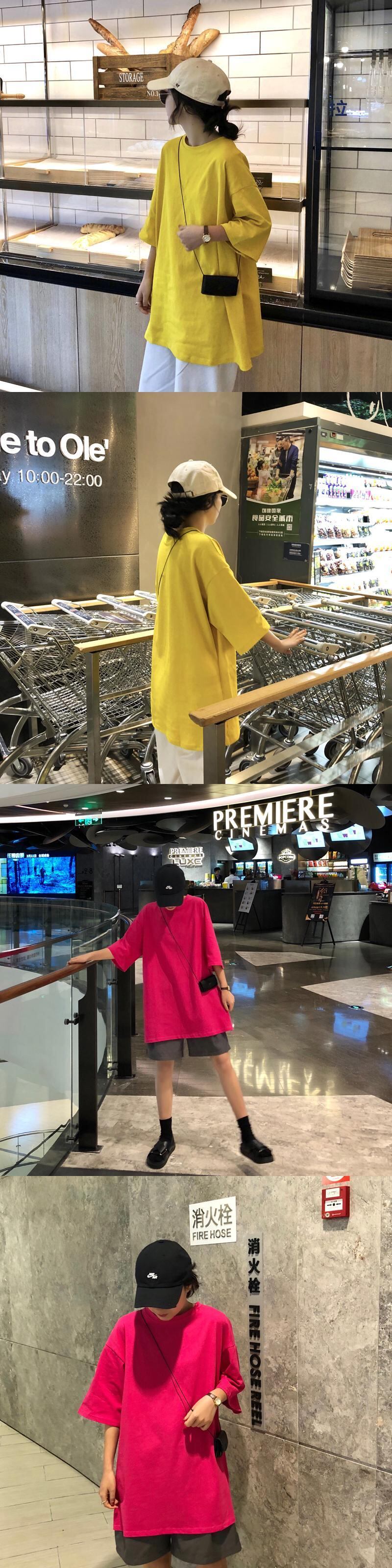 韓国ファッションルーズホワイトTシャツシャツ レディース夏服トレンドロング コットン 夏物 スタイル Marchs16989723304