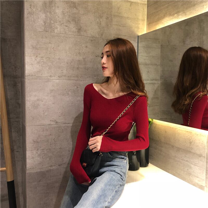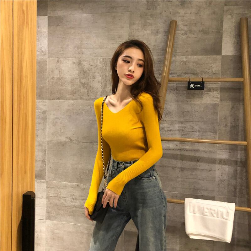 ゆったりシャツ スプリングVネックセーター ストレッチ秋物ニット ロング エラスティック 伸縮 春物 オータム Tシャツ 長袖 Marchs54718512037