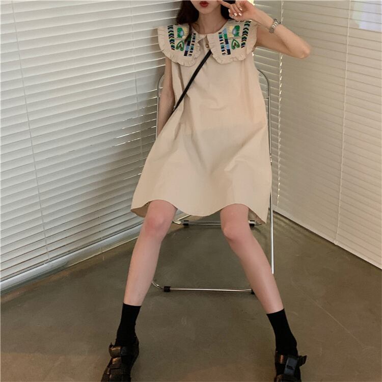 レディース夏服エスニックカラーワンピース 刺繍 大人ガーリー スウィート キュート カジュアル 夏物 スカート フラワーデザイン Marchs23917167143
