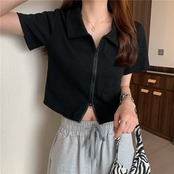 ブラックニットショートTシャツトップス ハイウェストウェストパンツ 夏服レディース 夏物 シルク ウエスト Marchs43404245470