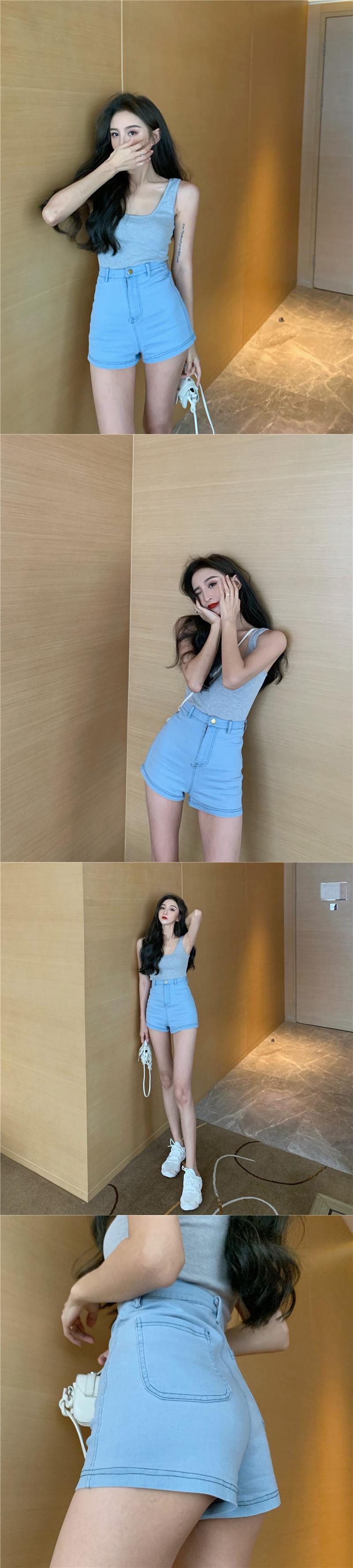 ウェストショーツ レディース夏服トレンドAラインパンツ 薄手スリムジーンズ 夏物 ウエスト Marchs78671680428