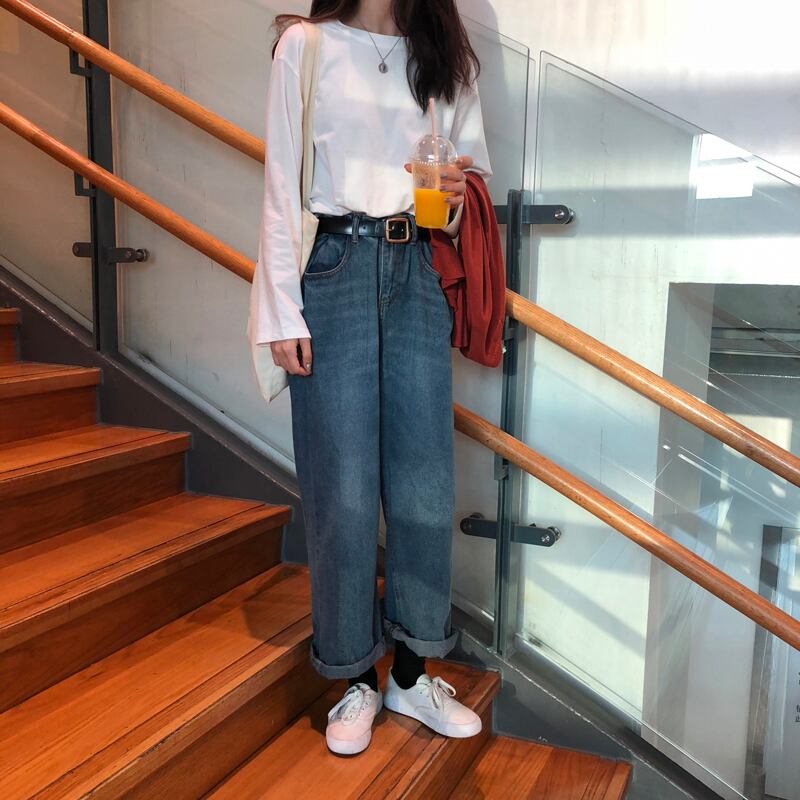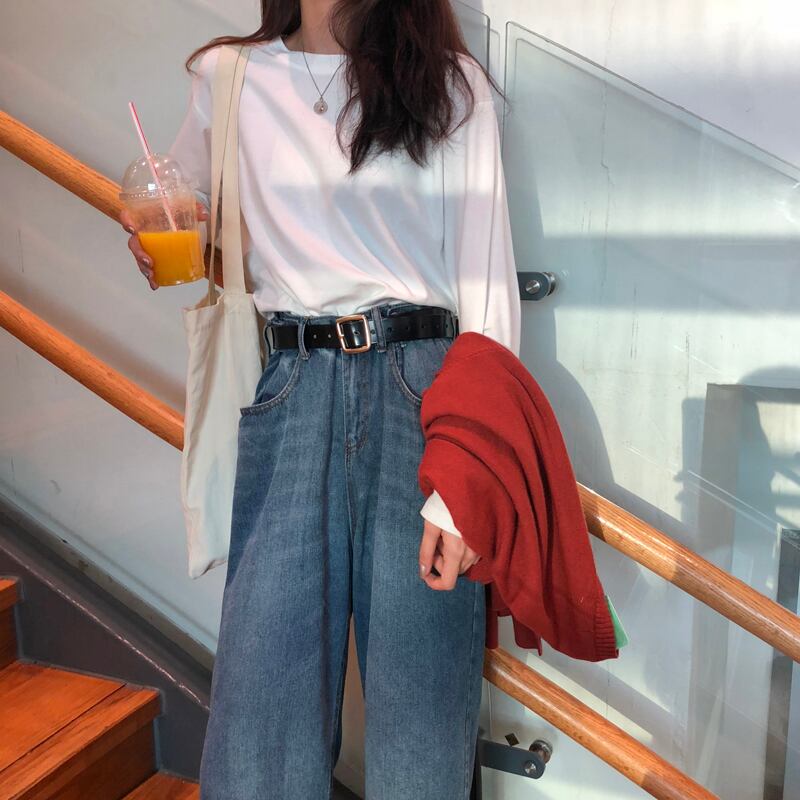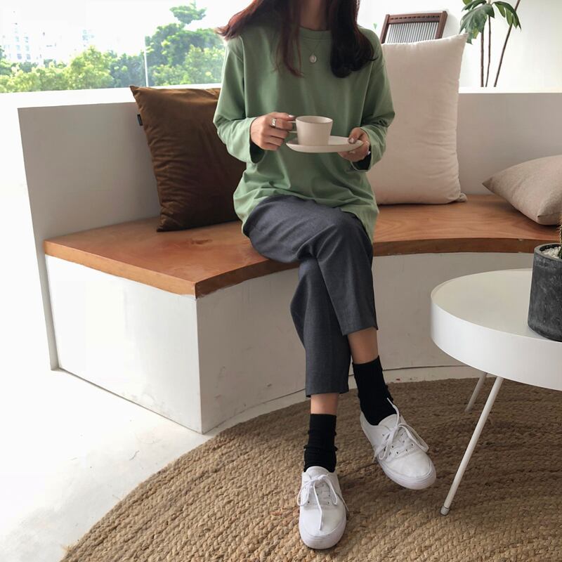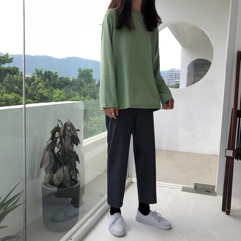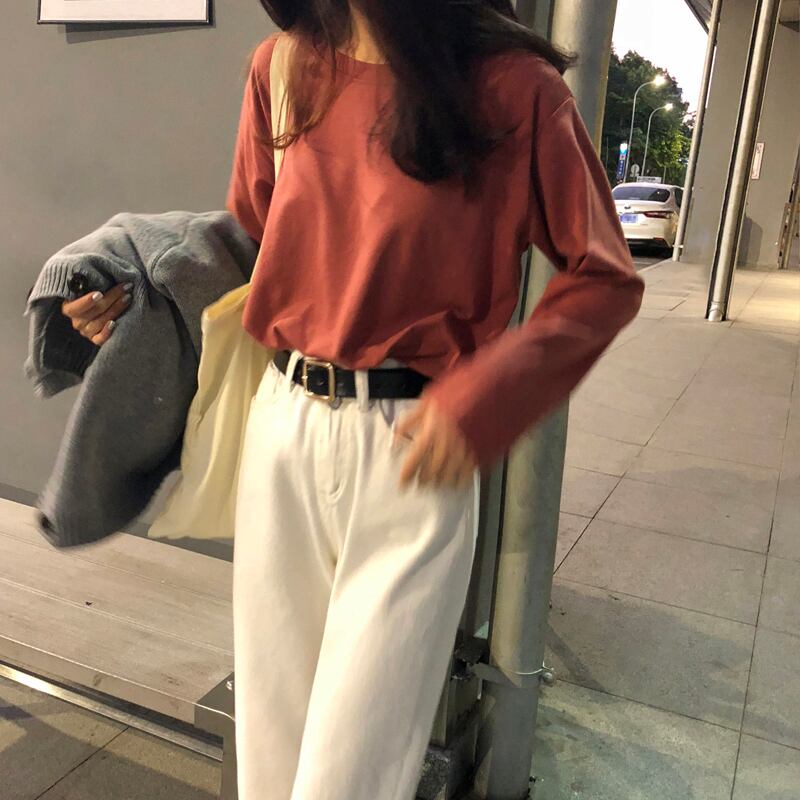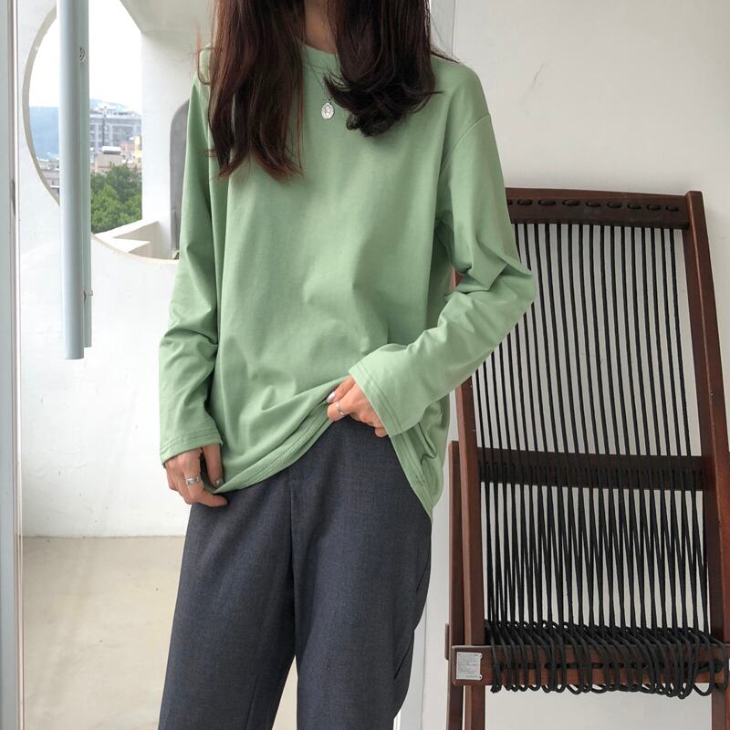 ラウンドネックTシャツシャツ 秋物レディースルーズ薄手ソリッド カラートップス ロング オータム Oネック ソリッドカラー 長袖 Marchs89418287605
