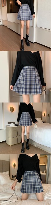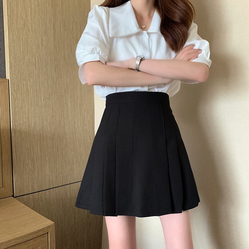 Aラインブラックスカート レディース夏服スプリングトレンドハイウェストウェストショートプリーツ 春物 夏物 ウエスト Marchs86313053705