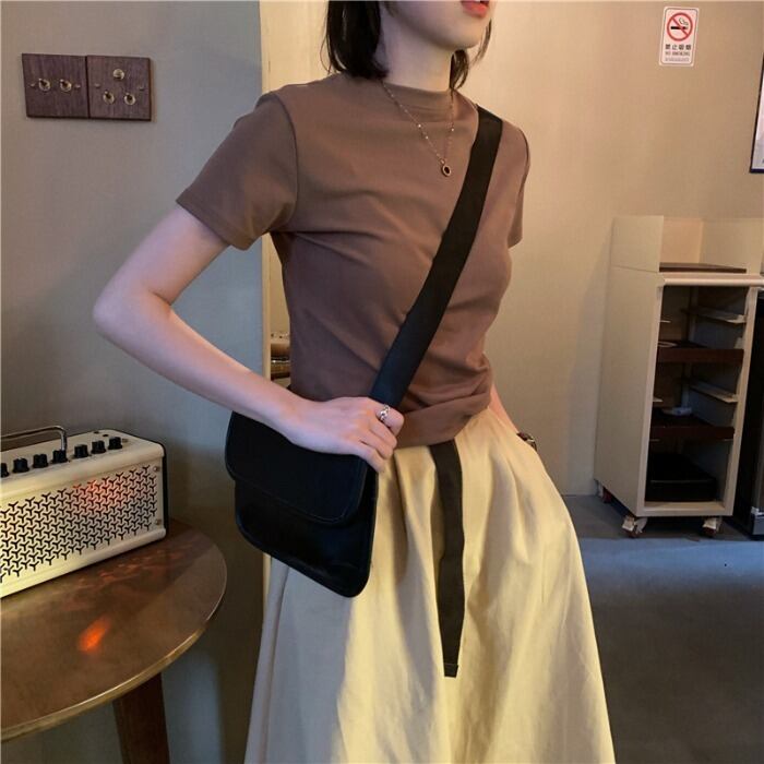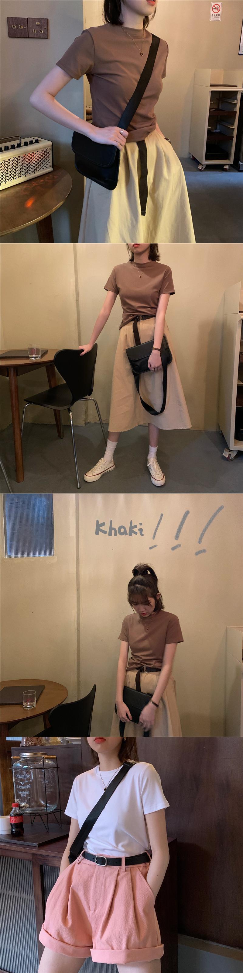 ベーシックスリムソリッド カラーゆったりシャツ ショートTシャツトップス 韓国ファッション ソリッドカラー スタイル Marchs61306164975