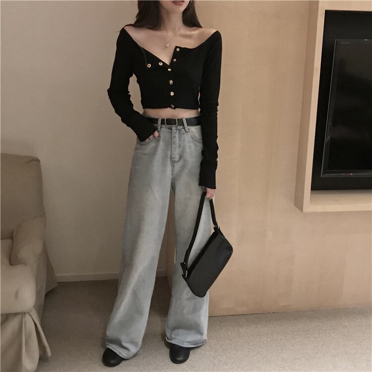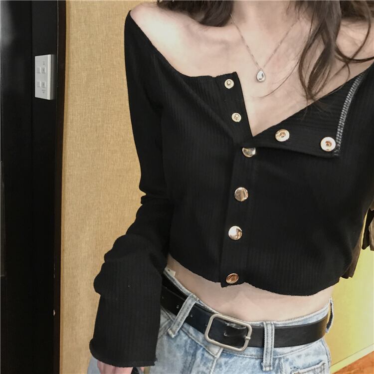 スプリングショートクロップドニットゆったりTシャツ薄手トップス ロング 春物 長袖 Marchs45087880820