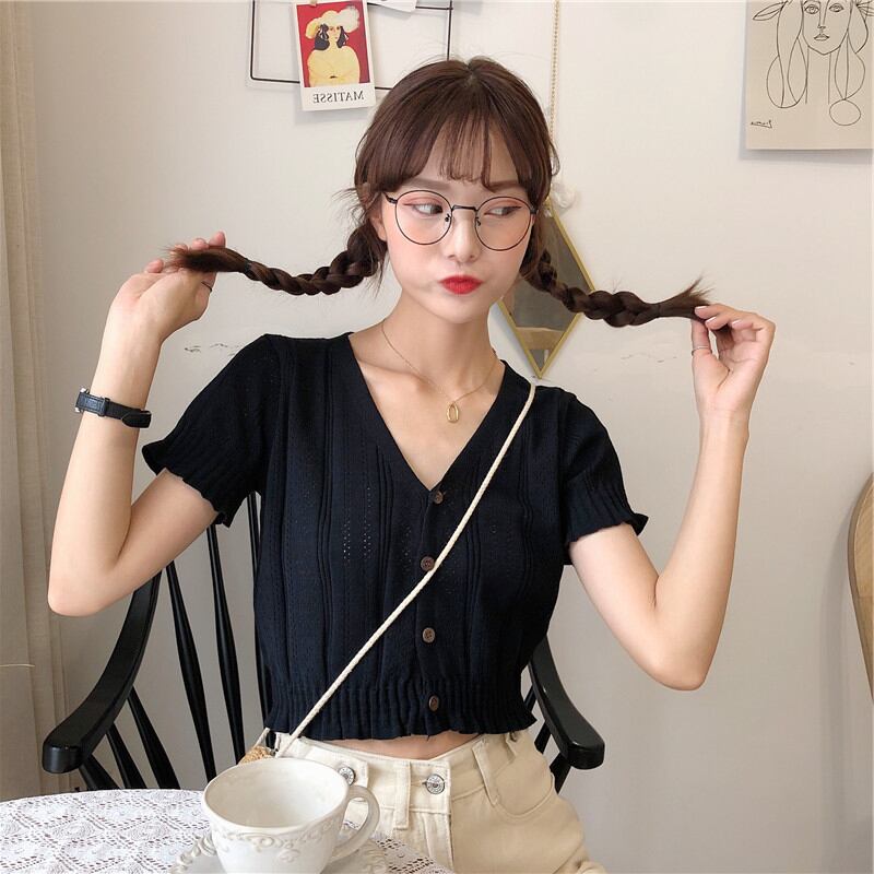 夏服スタイル韓国ファッションブラウス ショートVネックニットカーディガンTシャツレディース 夏物 シルク Marchs58966928875