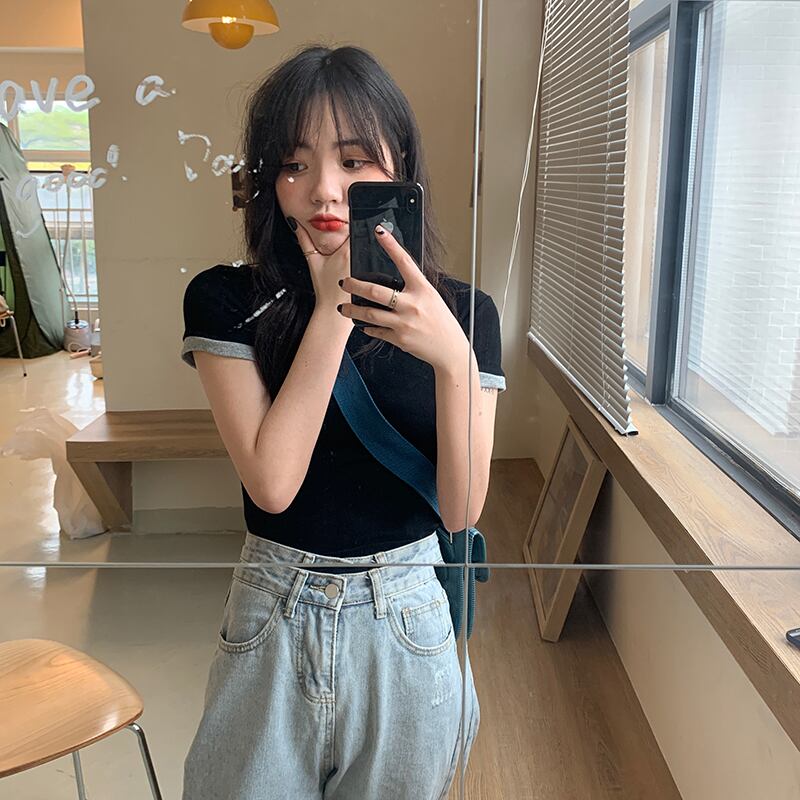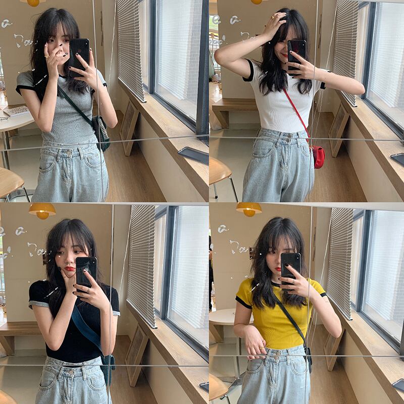 ショートレディーストレンドラウンドネックTシャツ夏服 夏物 タイツ ストッキング ソックス Oネック Marchs55615778491