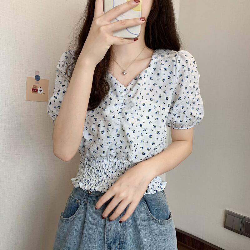 フローラルショートシャツ 薄手コート 夏服スタイルウェストトップス 夏物 花柄 ウエスト Marchs38970857845