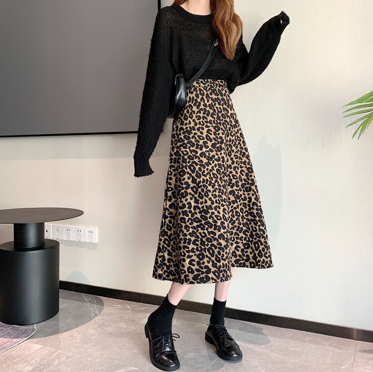 レオパードプリント柄スカート レディースハイウェストAラインスプリング 春物 ウエスト ミドル丈 Marchs90831731415