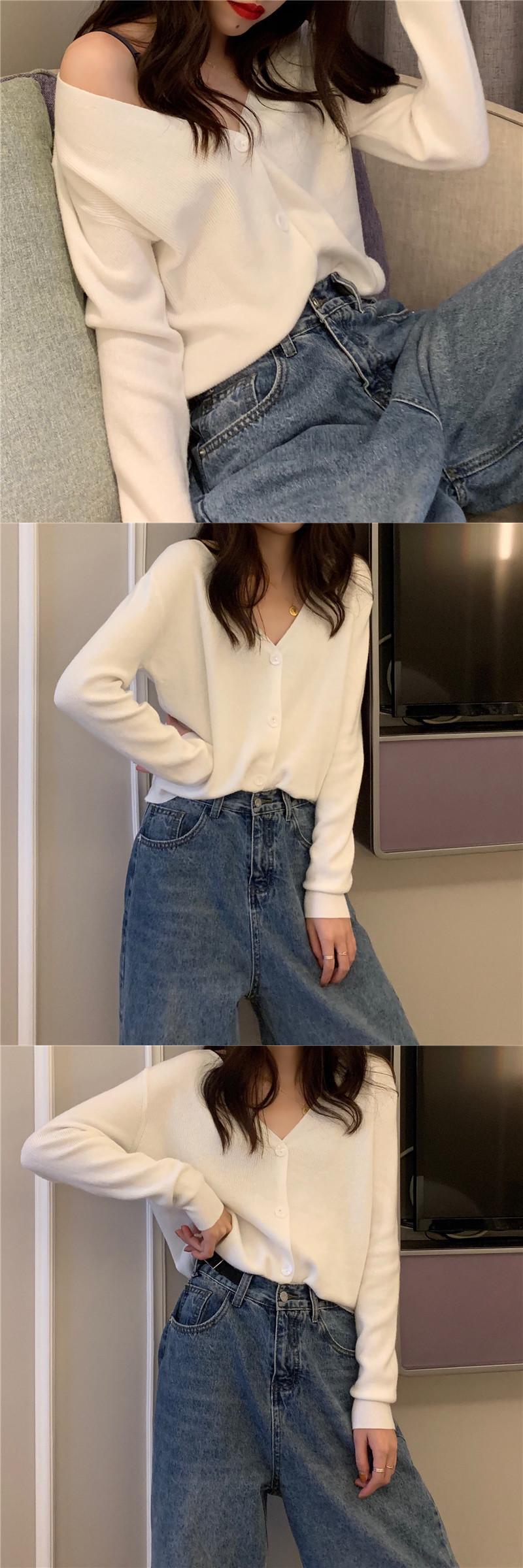 ニットカーディガンスプリング秋物スタンダードルーズセーター ジャケット Vネックホワイト ロング レトロ 春物 オータム 長袖 Marchs93428096844