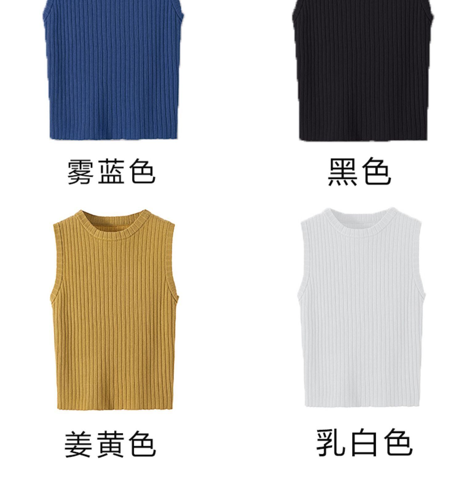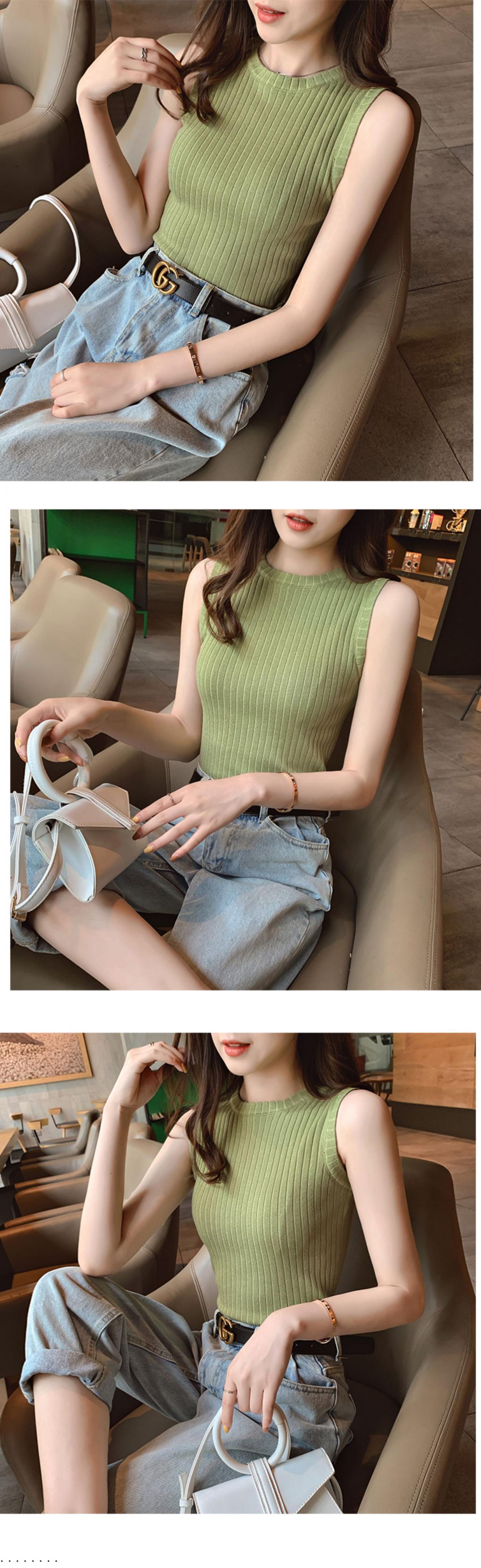 トレンドグリーンTシャツニットセーター ショートゆったりノースリーブトップス 夏服 夏物 Marchs79884949656