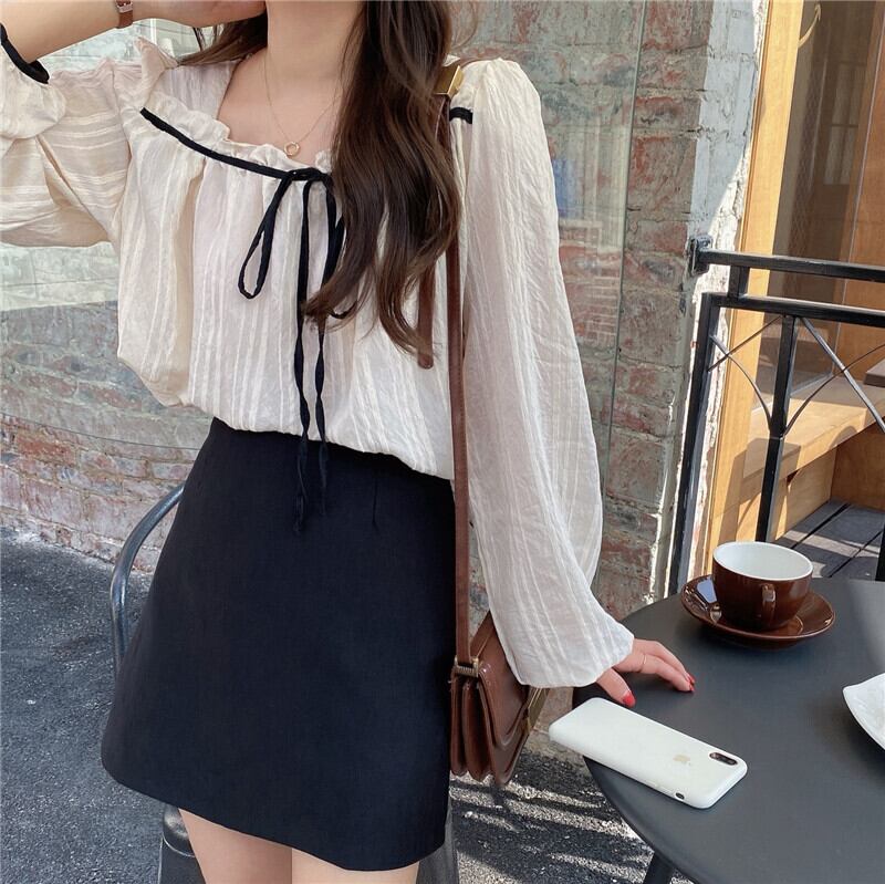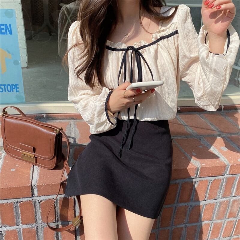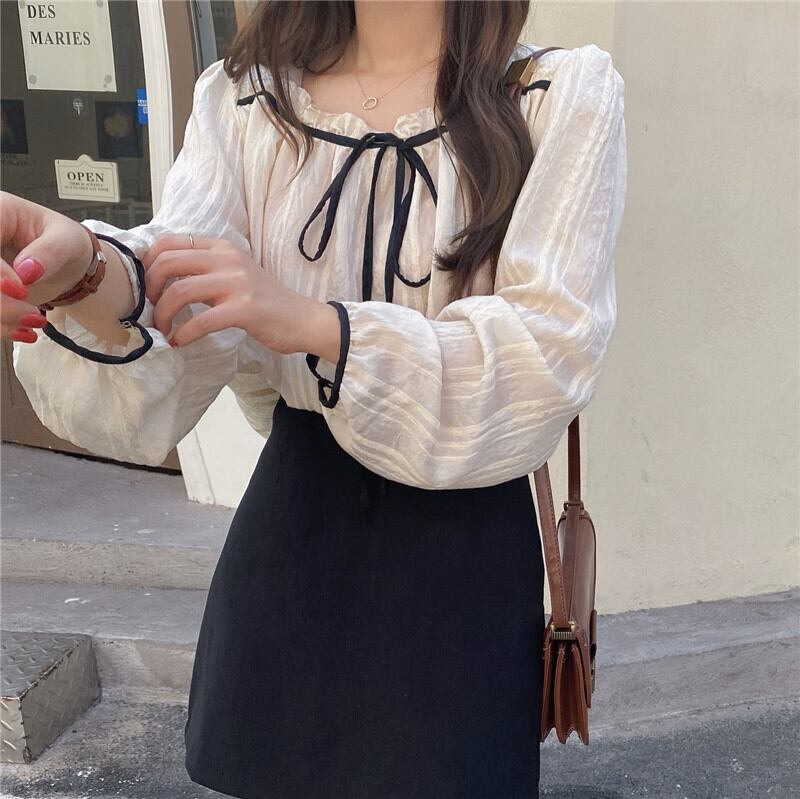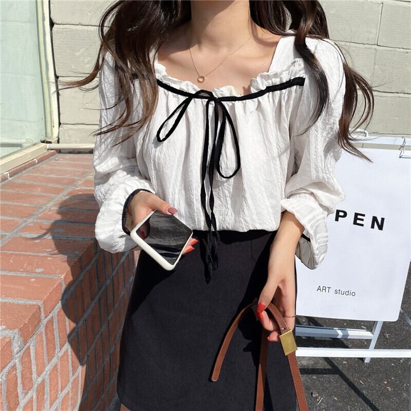 スプリングルーズカラーシャツ レディーススリムホワイトトップス ロング 春物 スクウェア 長袖 Marchs61452810726