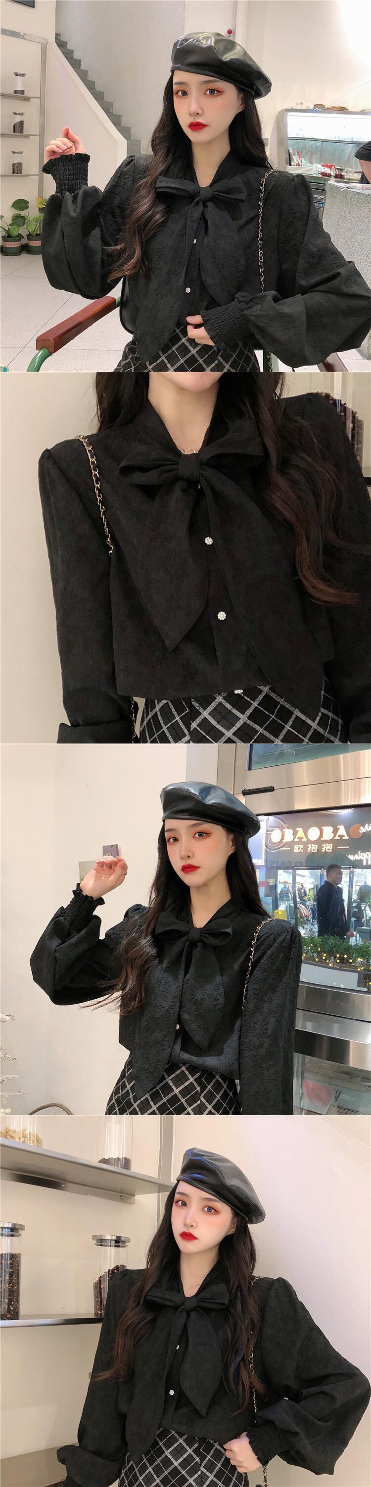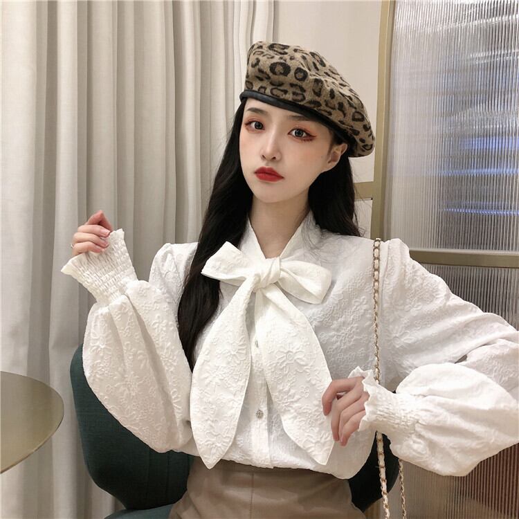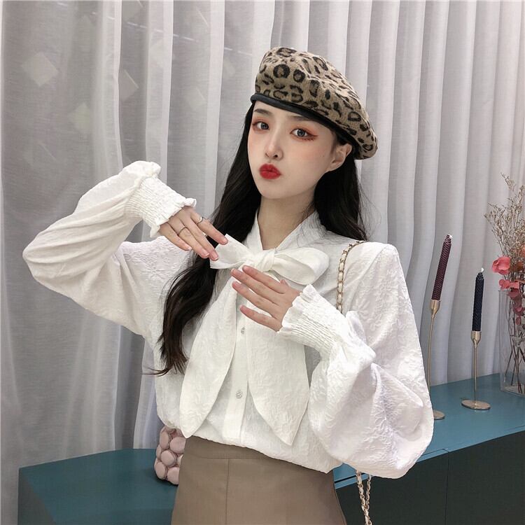 スプリングホワイトシャツ レディースシフォン ロング リボン 春物 長袖 Marchs88137501458