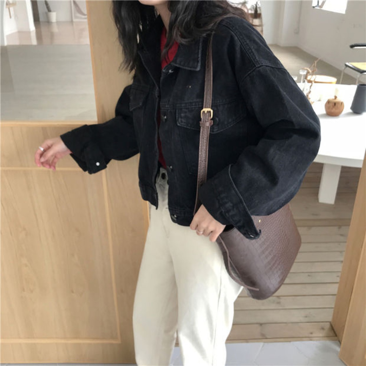 ブラックグレーショートジャケット レディーススプリング秋物韓国ファッションルーズトップス 春物 オータム ボーイズ Marchs58316002891