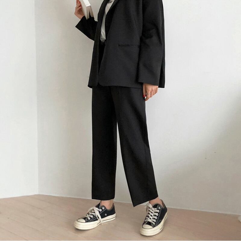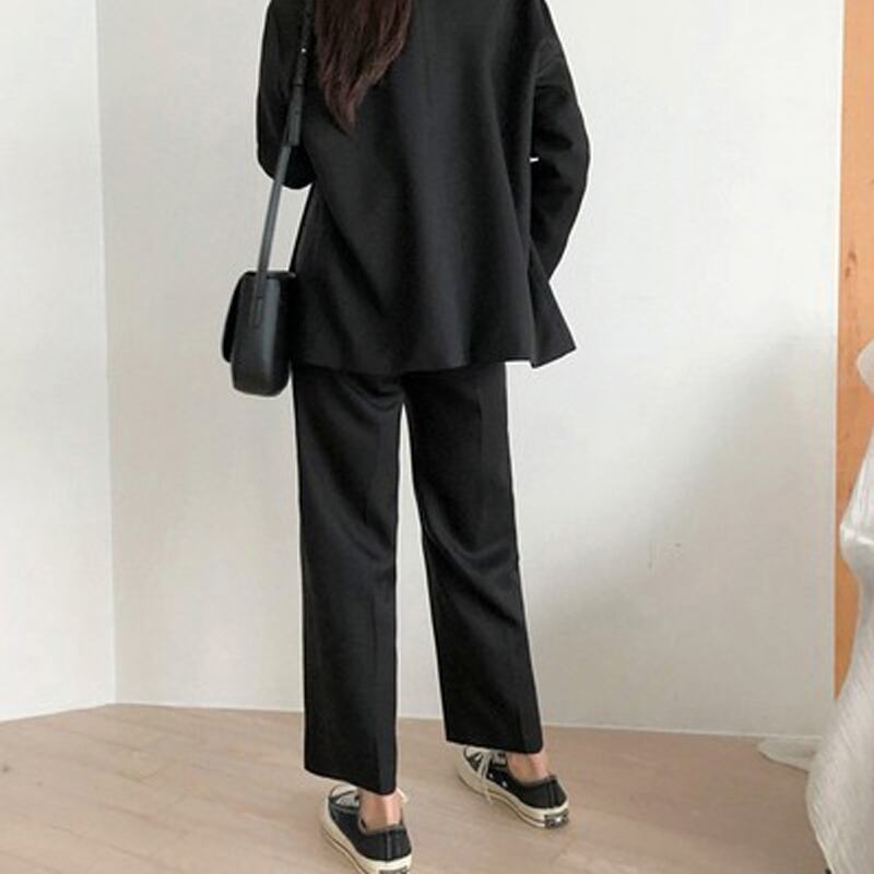 ワイドレッグパンツ スプリング秋物韓国ファッションルーズハイウェストウェストブラック 春物 オータム ワイドパンツ スタイル ウエスト Marchs86032791347