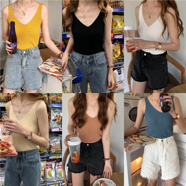 夏服スタンダードVネックニットゆったりシャツ スタイルトップス レトロ 夏物 Marchs40303725293