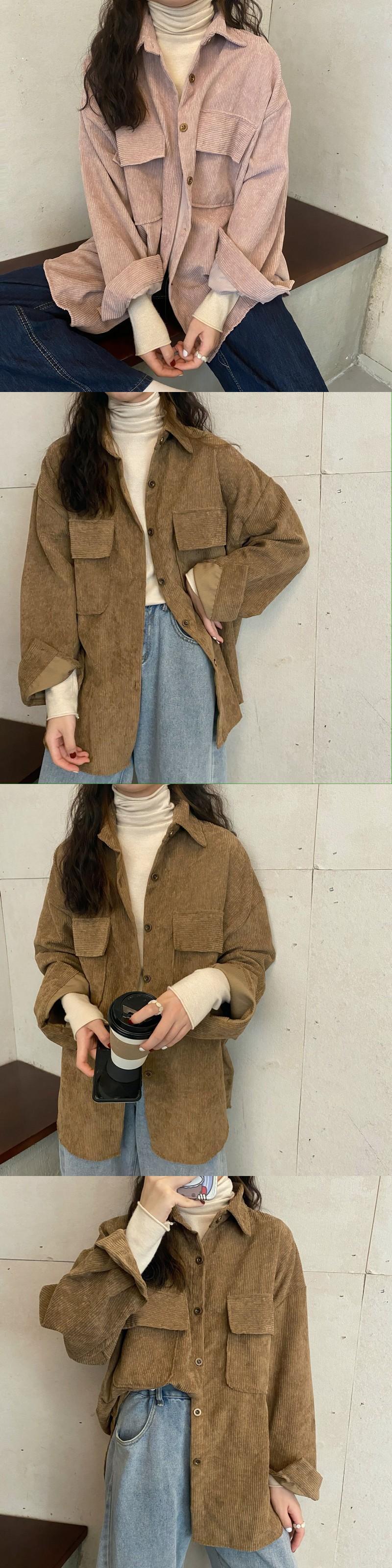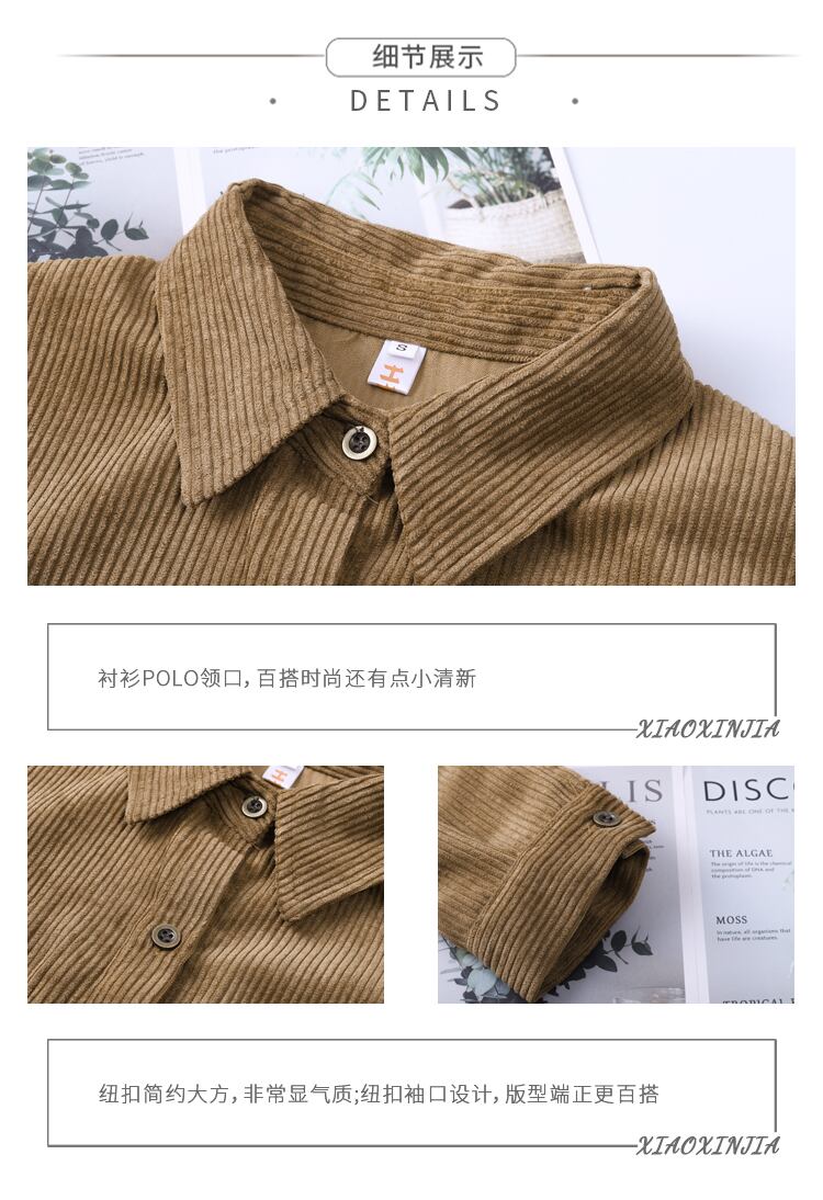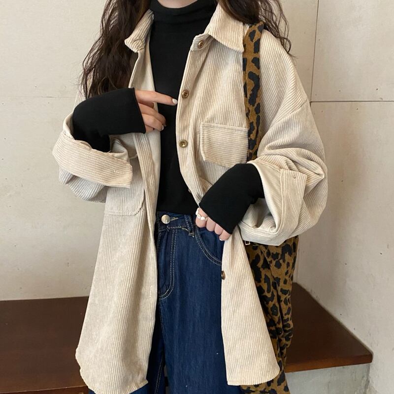 スタンダードスタイルコーデュロイシャツ ルーズブラウス スプリングジャケット レトロ 春物 ミドル丈 Marchs85689657309
