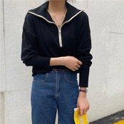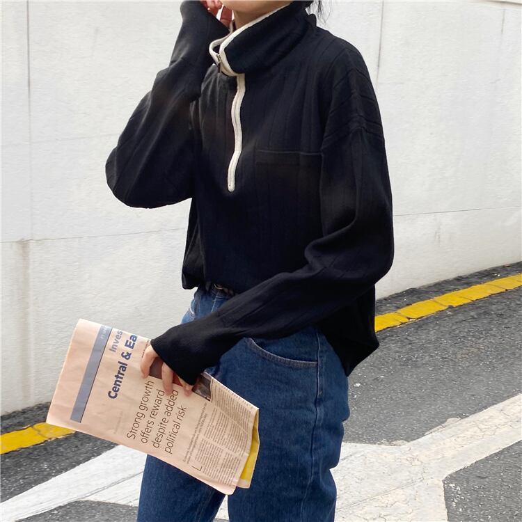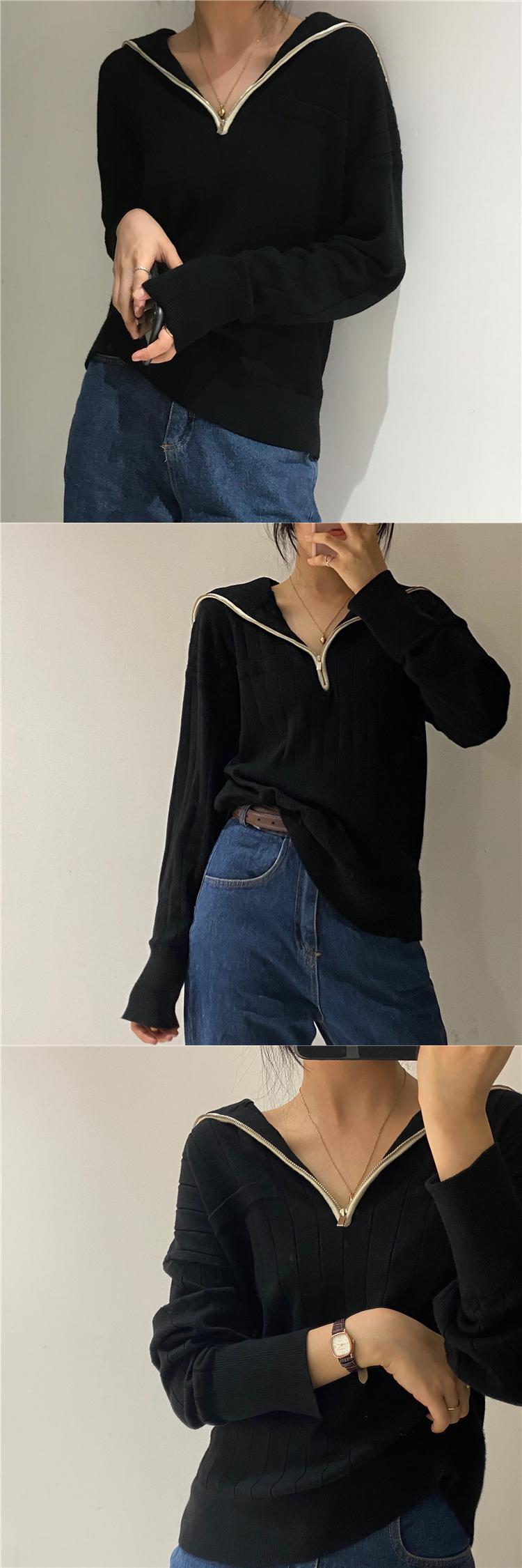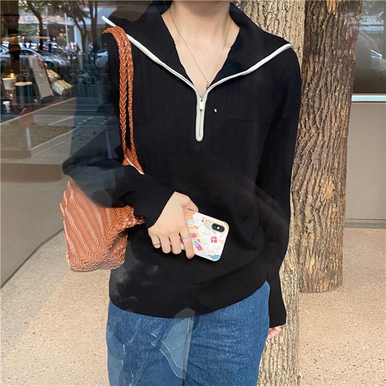 スプリングジッパー長袖スリーブセーター レディースルーズ薄手トップス ロング 春物 Marchs77844244331