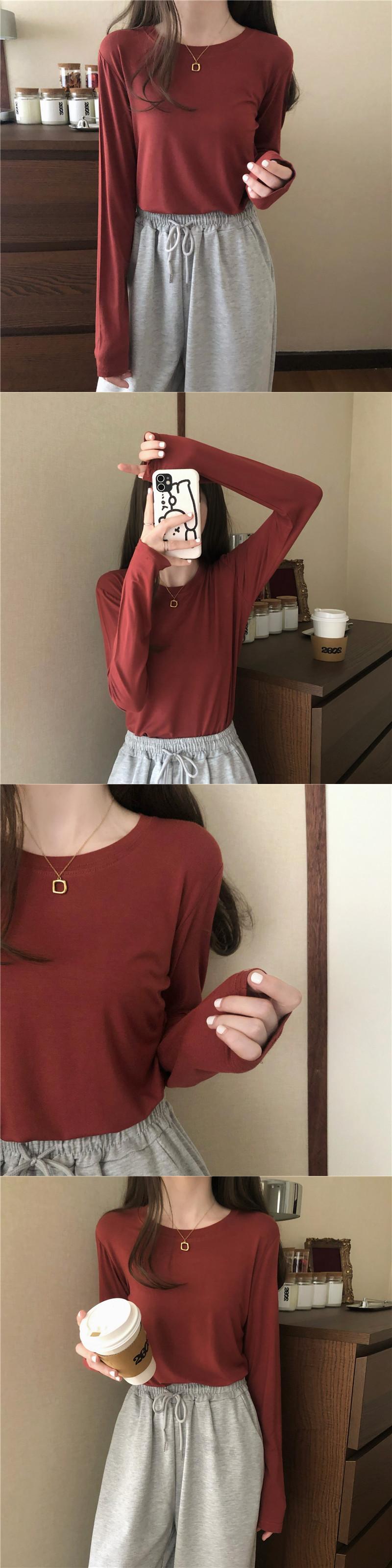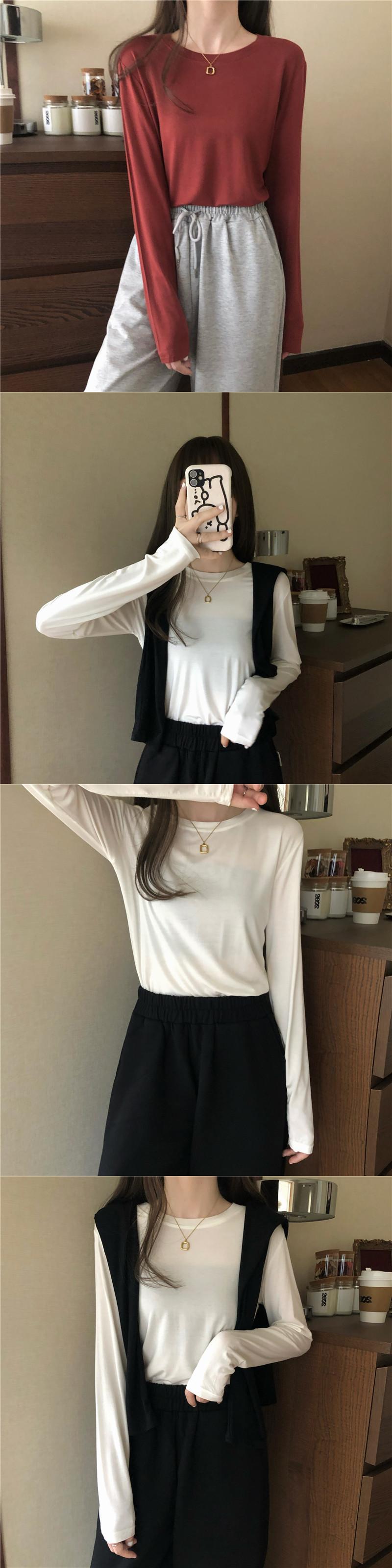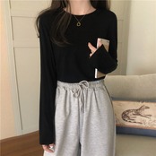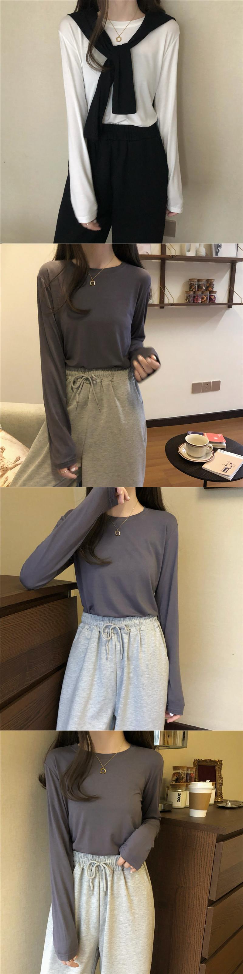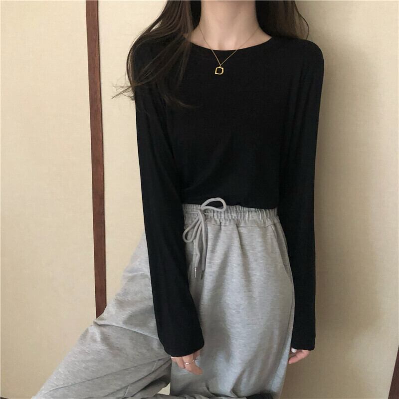 スプリング秋物ラウンドネックホワイトTシャツシャツ 薄手ブラックスリムトップス ゆったり ロング 春物 オータム Oネック 長袖 Marchs40286817729